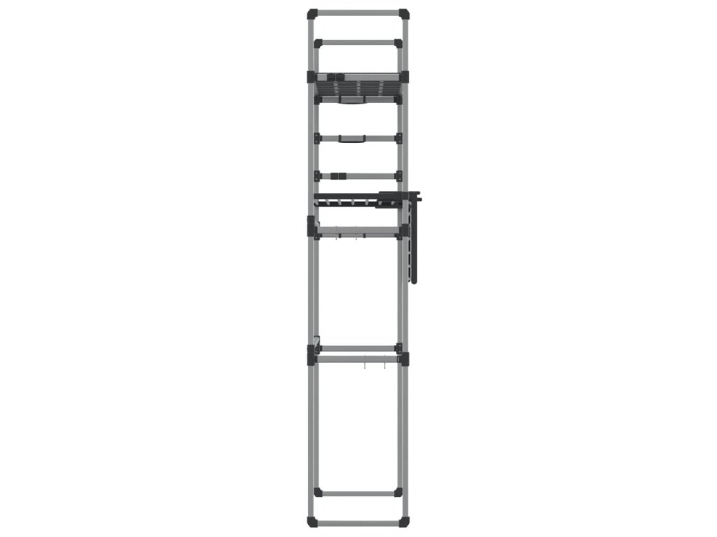- Robustní materiál: Hliníkový kov je lehký a pevný. Je odolný proti korozi díky samoochranné oxidické vrstvě. Hliníkový rám policového regálu nad pračku zajišťuje robustnost a stabilitu.