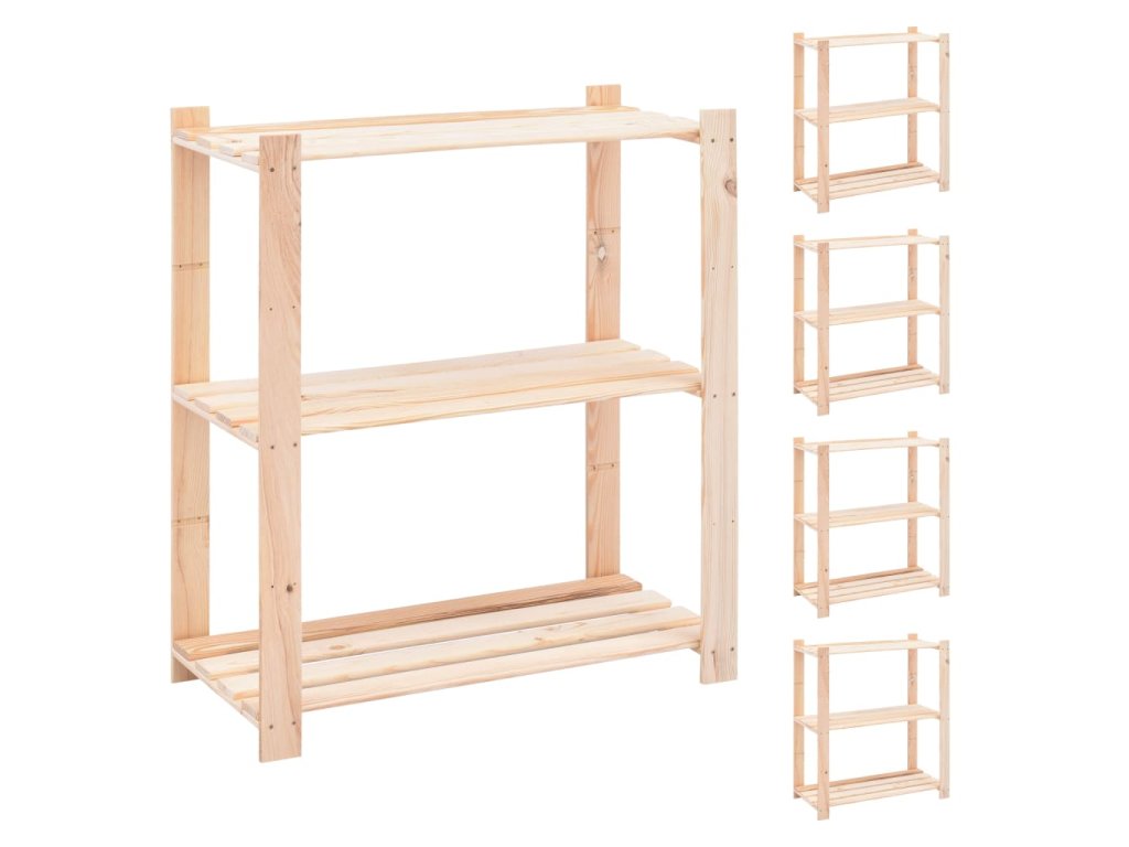 Regály 3 police 5 ks 80 x 38 x 90 cm masivní borovice 150 kg 3051119