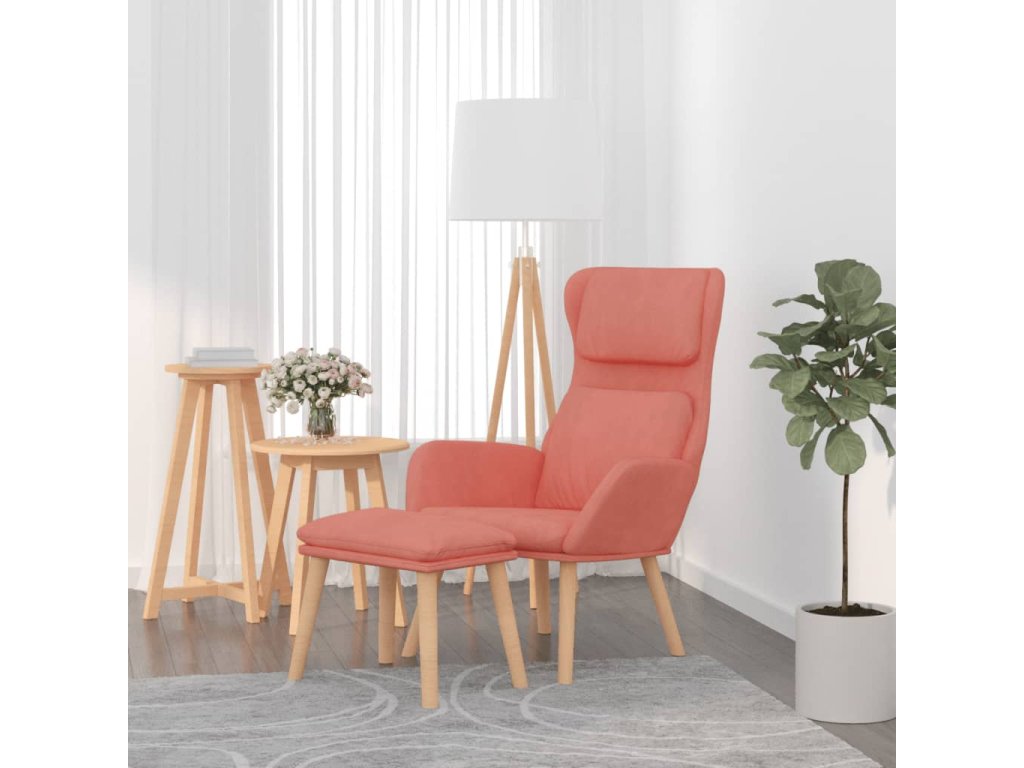 Relaxační křeslo se stoličkou růžové samet 3097824