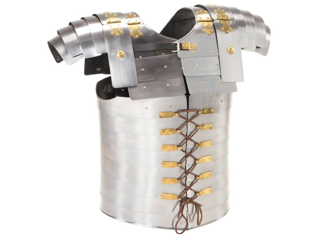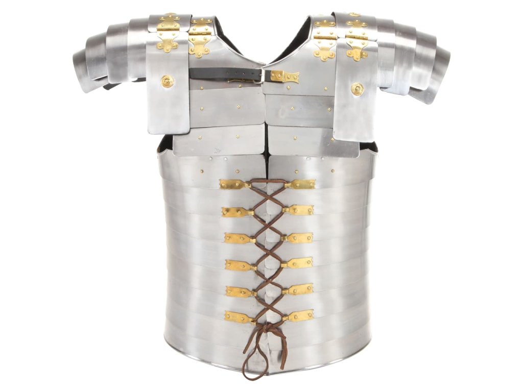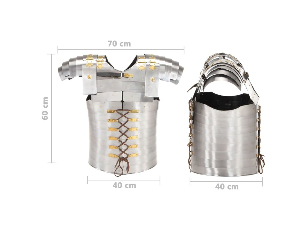 Tento pancíř je replika původního římského legionářského pancíře s předním i zadním dílem, známý také jako lorica segmentata. Je plně nositelný a nastavitelné kožené pásky umožňují pohodlné nošení.