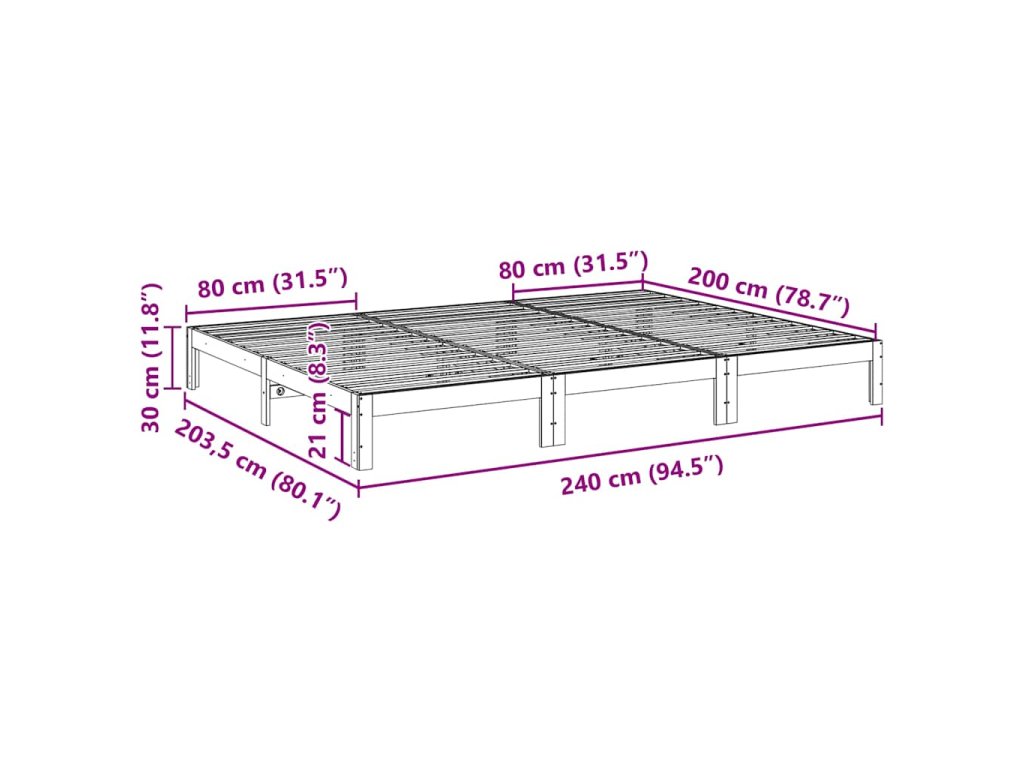 Rodinný rám postele bez matrace 240x200 cm masivní borovice 3324565