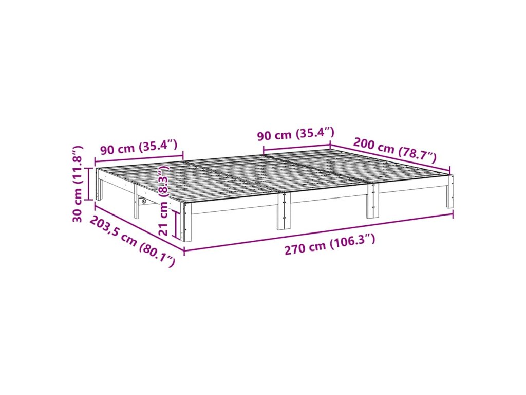 Rodinný rám postele bez matrace bílý 270x200cm masivní borovice 3324569