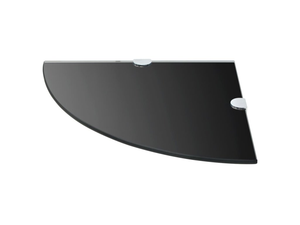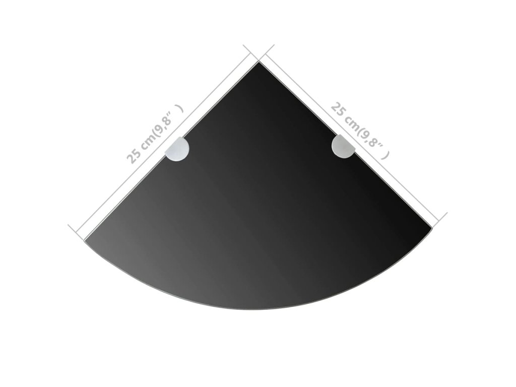 Rohová police s chromovými podpěrami sklo černé 25x25 cm 243855