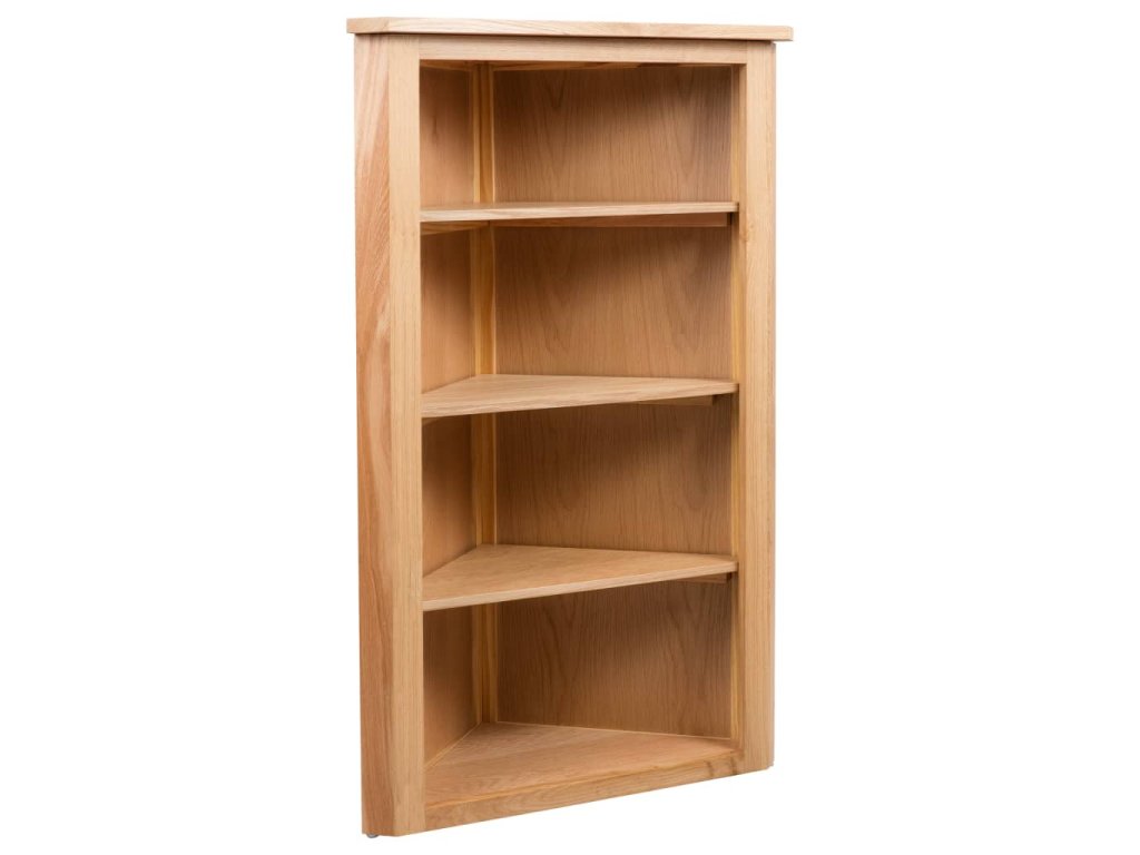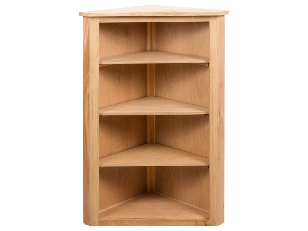 Rohová polička je vyrobená z masivního dubu a MDF s dubovou dýhou, díky čemuž je pevná a odolná. Používá se k dekorativním účelům, jelikož nabízí spoustu úložného prostoru k vystavování trofejí, sběratelských předmětů a fotografií. Stejně tak se však hodí i k přehlednému uschování různých domácích potřeb, jako jsou knihy, hrníčky, květináče atd. Se svou překrásnou povrchovou úpravou okrášlí tento výrobek každou domácnost.