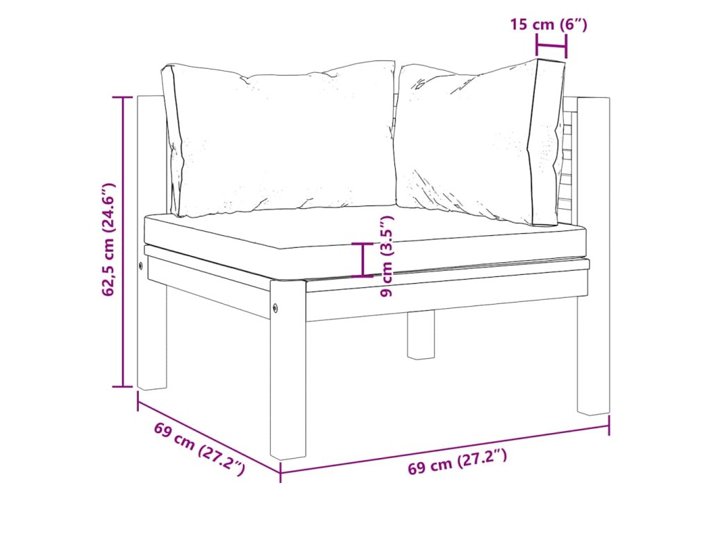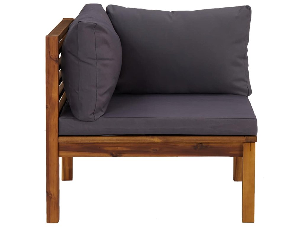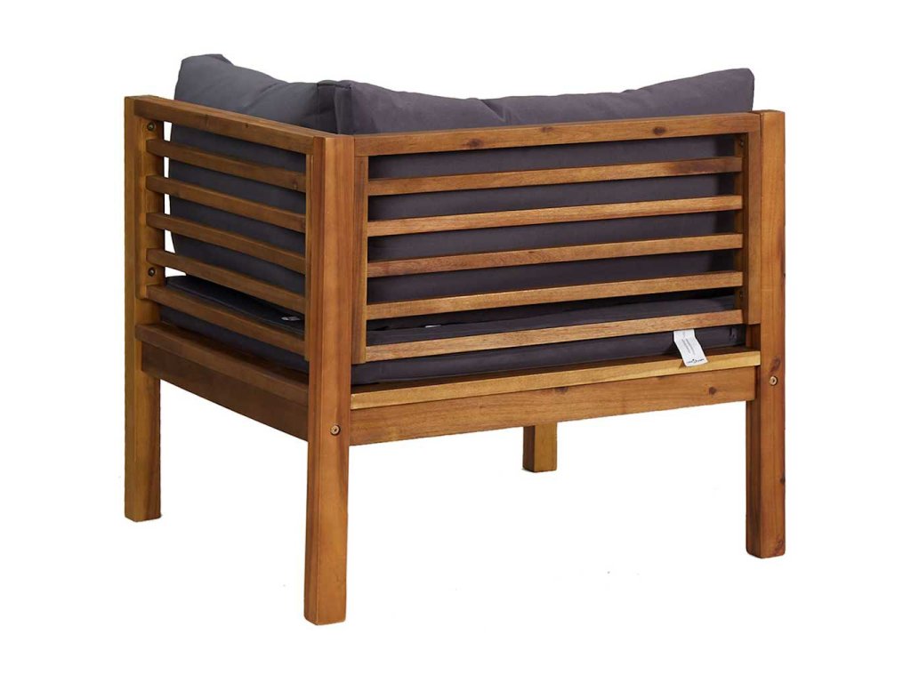 Rohová pohovka je vyrobená z masivního akáciového dřeva, takže je pevná a robustní a vzhledem k olejové povrchové úpravě je vhodná pro venkovní použití. Polstrovaný sedák a podušky na opěradle poskytují maximální pohodlí při sezení. Dá se zkombinovat s dalšími dostupnými modulárními segmenty, takže si můžete vytvořit vlastní zahradní posezení!