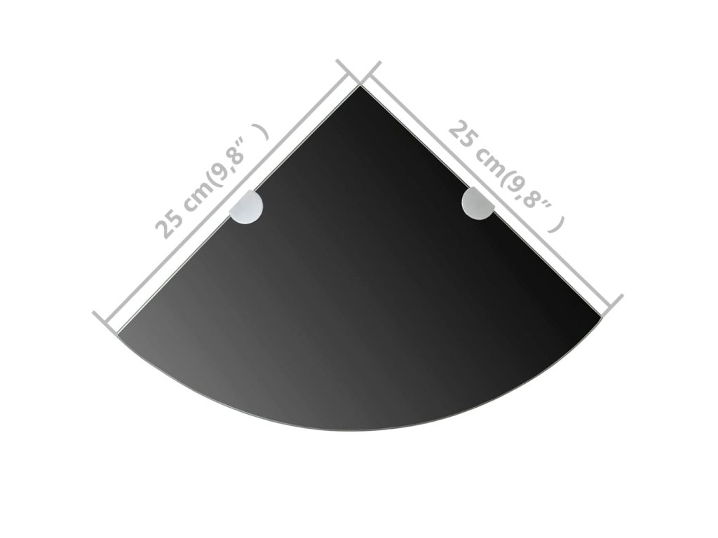 Rohové police 2 ks s chromovými podpěrami sklo černé 25 x 25 cm 3051595