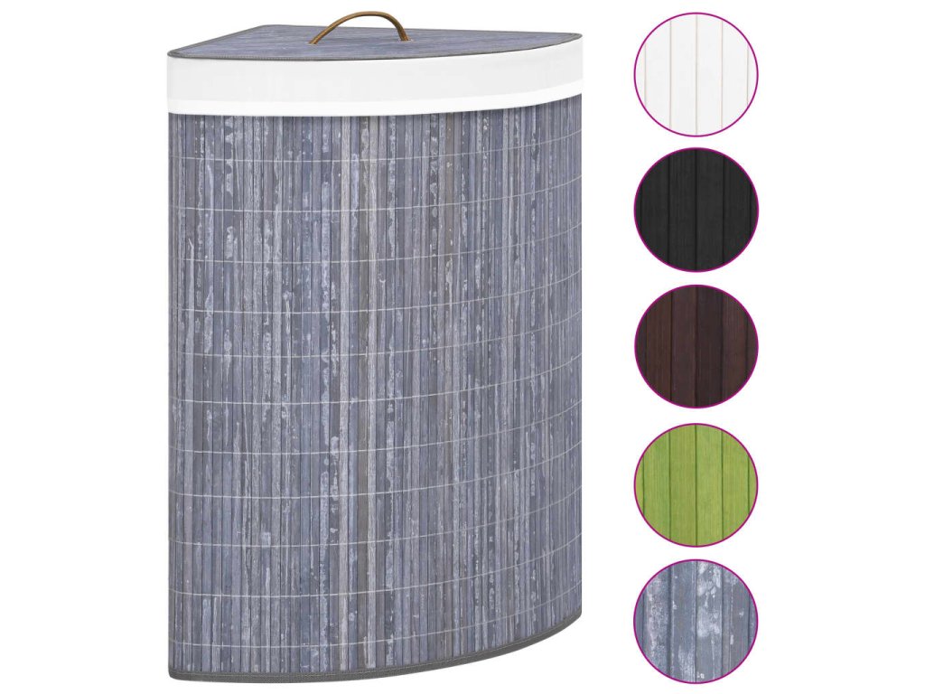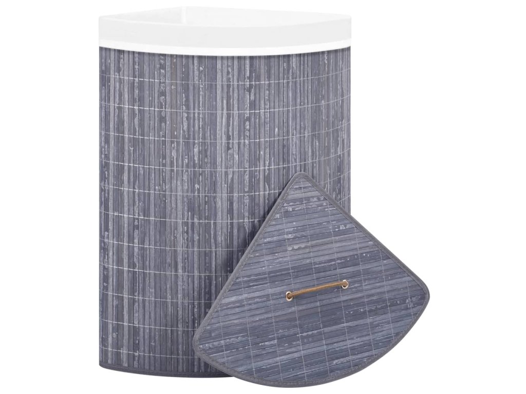 Rohový bambusový koš na prádlo šedý 60 l 320761