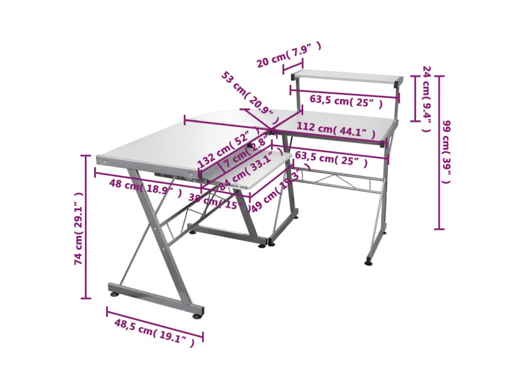 Rohový počítačový stůl Bílý 132 x 112 x 99 cm kompozitní dřevo 20587