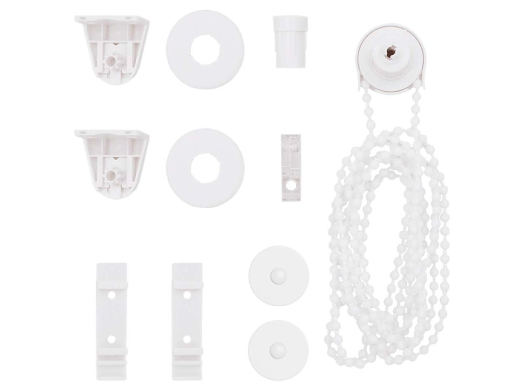 Balení obsahuje 1 x 40 cm horní hliníkovou tyč s 37 x 100 cm látky s pruhovaným potiskem, 1 x 40 cm horní tyč, 1 x 40 cm těžká spodní tyč, 2 x háček, 2 x konzole, 1 x držák řetízku, 2 x těsnění a 1 x kuličkový řetízek.