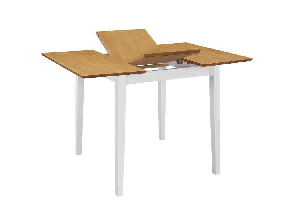 Jídelní stůl je vyroben z masivního gumovníkového dřeva. Stolní deska je z MDF s dýhou z gumovníkového dřeva, která dodává nábytku jemné rustikální kouzlo. Kdykoli potřebujete více místa, jedinečný design vám umožní roztáhnout stůl až na 120 cm. Stůl rozložíte, když máte hosty, a složíte jej, abyste ušetřili místo.