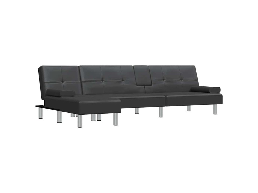Rozkládací pohovka ve tvaru L černá 255x140x70 cm umělá kůže 3157265