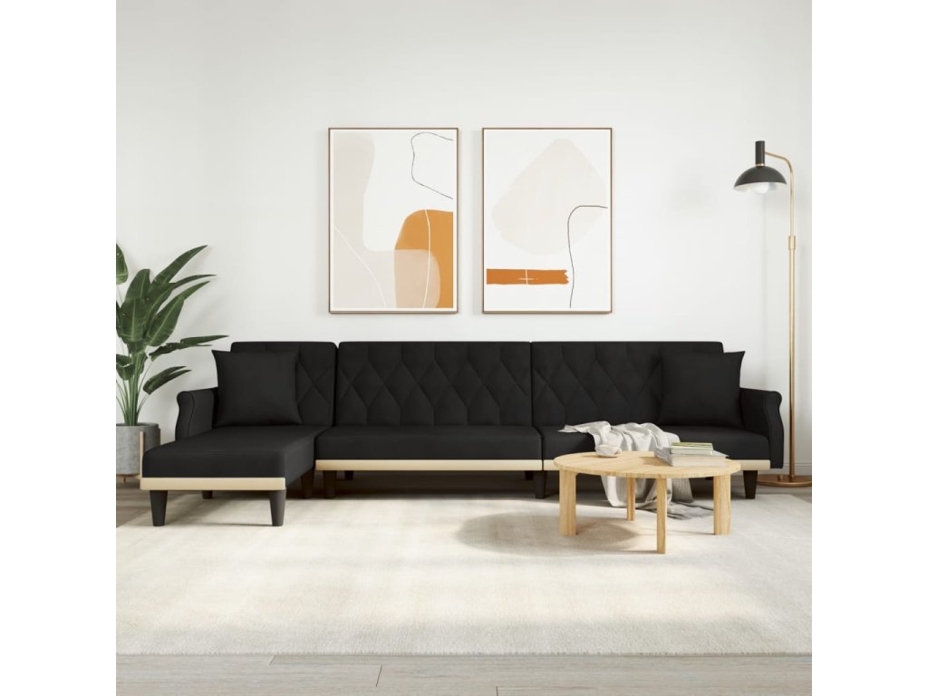 Rozkládací pohovka ve tvaru L černá 271 x 140 x 70 cm samet 3157279