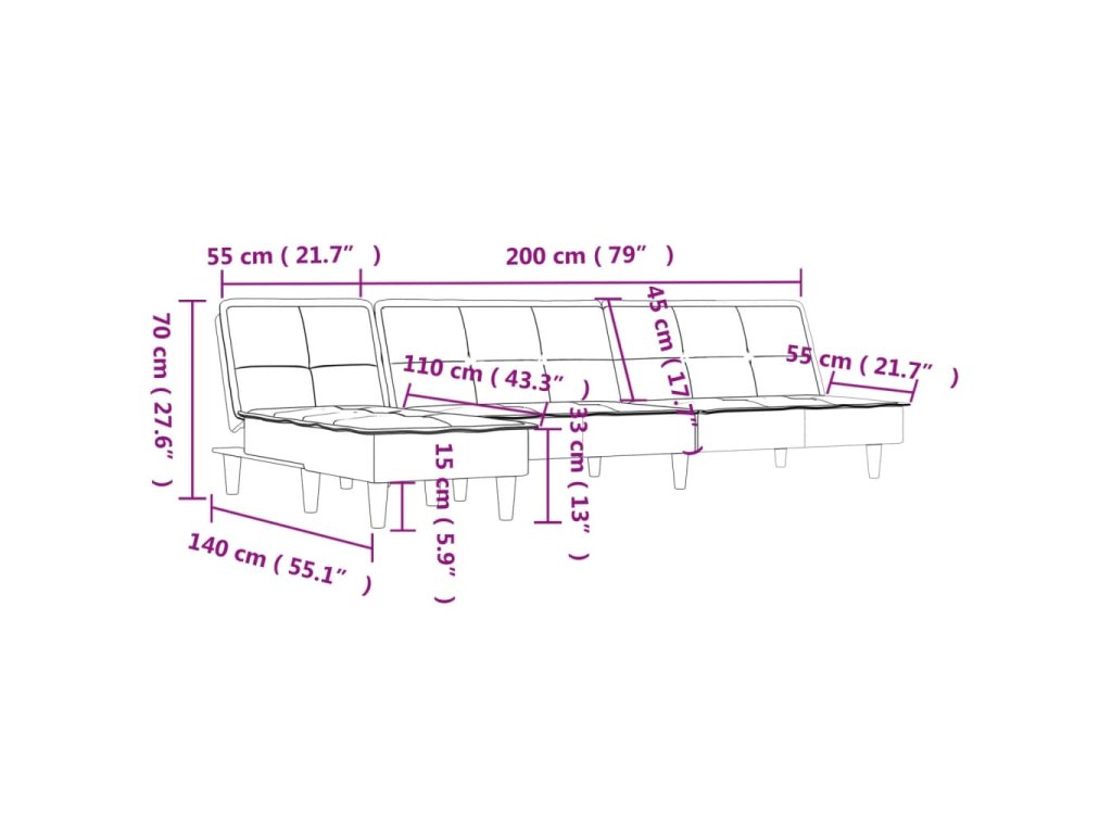 - Výrobek je tvořen rozkládací pohovkou a lenoškou. Lenošku můžete umístit vpravo i vlevo, jak vám to vyhovuje.