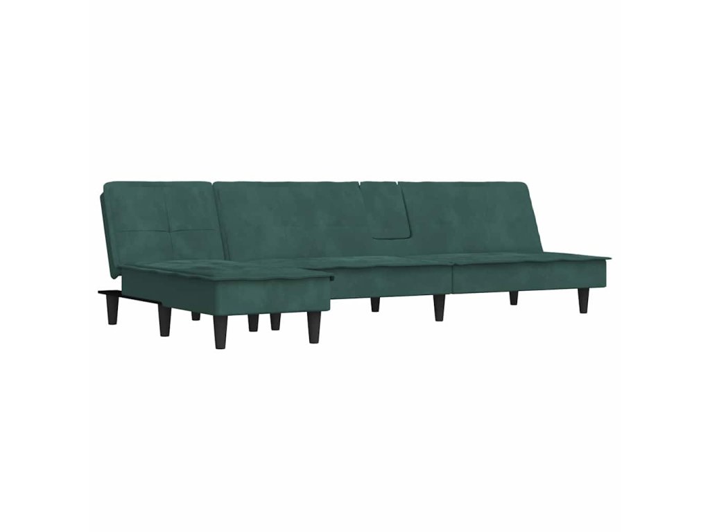Rozkládací pohovka ve tvaru L tmavě zelená 255x140x70 cm samet 3157262