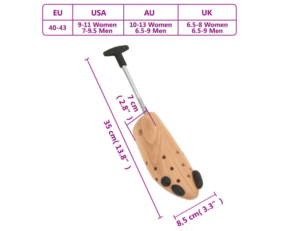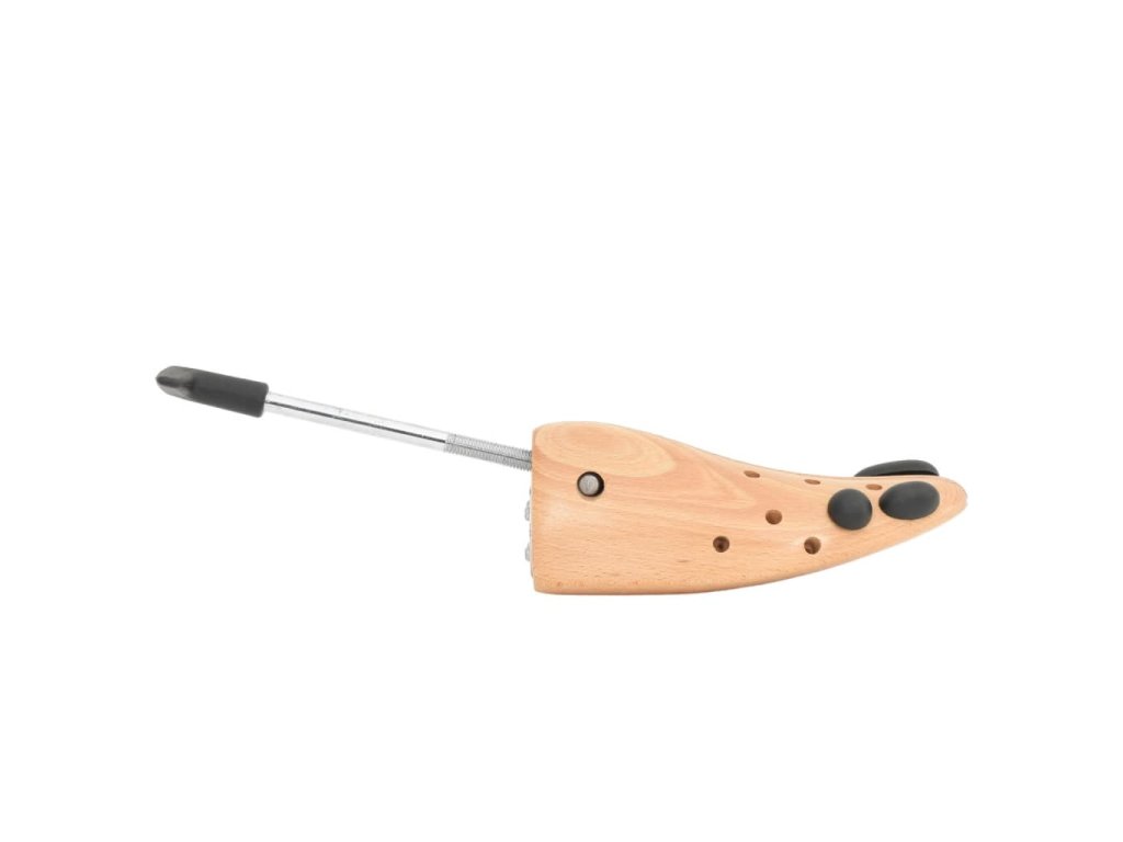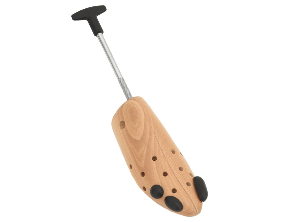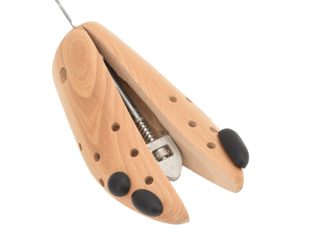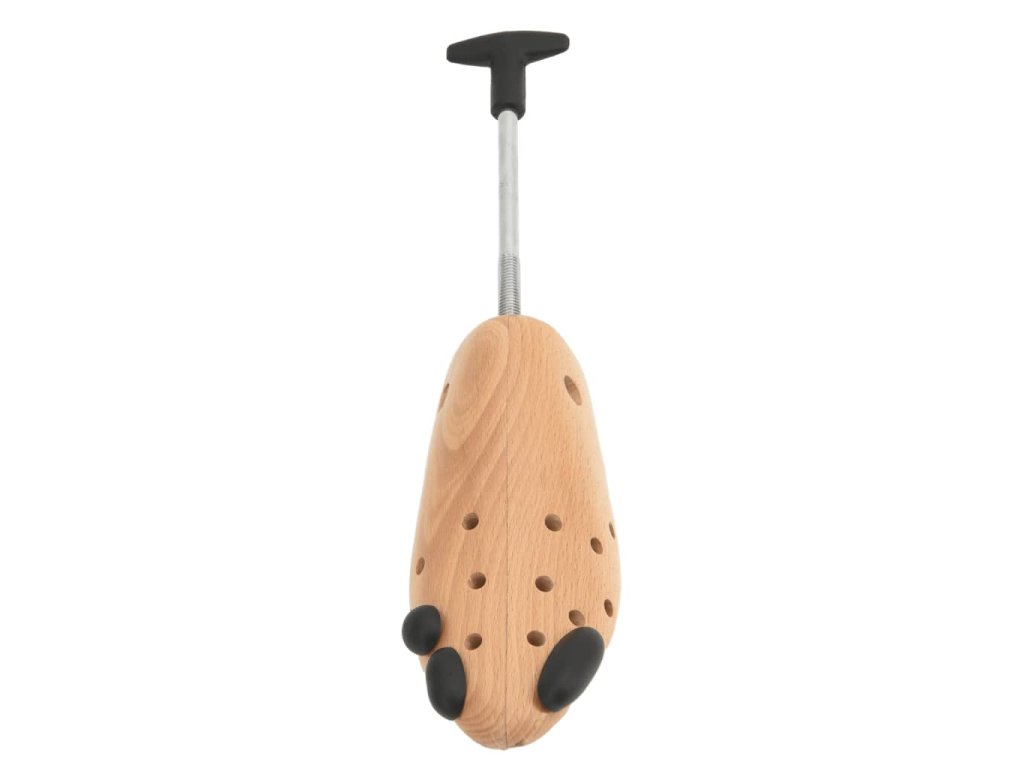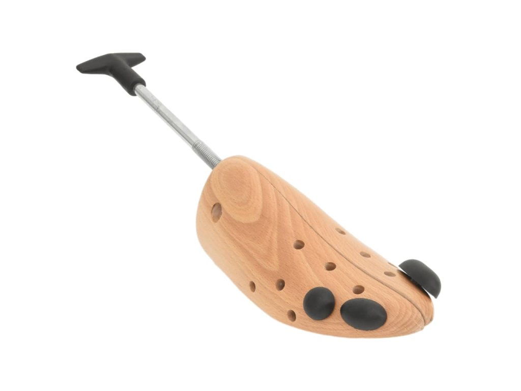 - Masivní bukové dřevo: Tento napínák je vyroben z bukového dřeva, které pohlcuje vlhkost, příjemně voní a pomáhá udržovat tvar obuvi, zejména kožené, a prodlužuje tak její životnost.