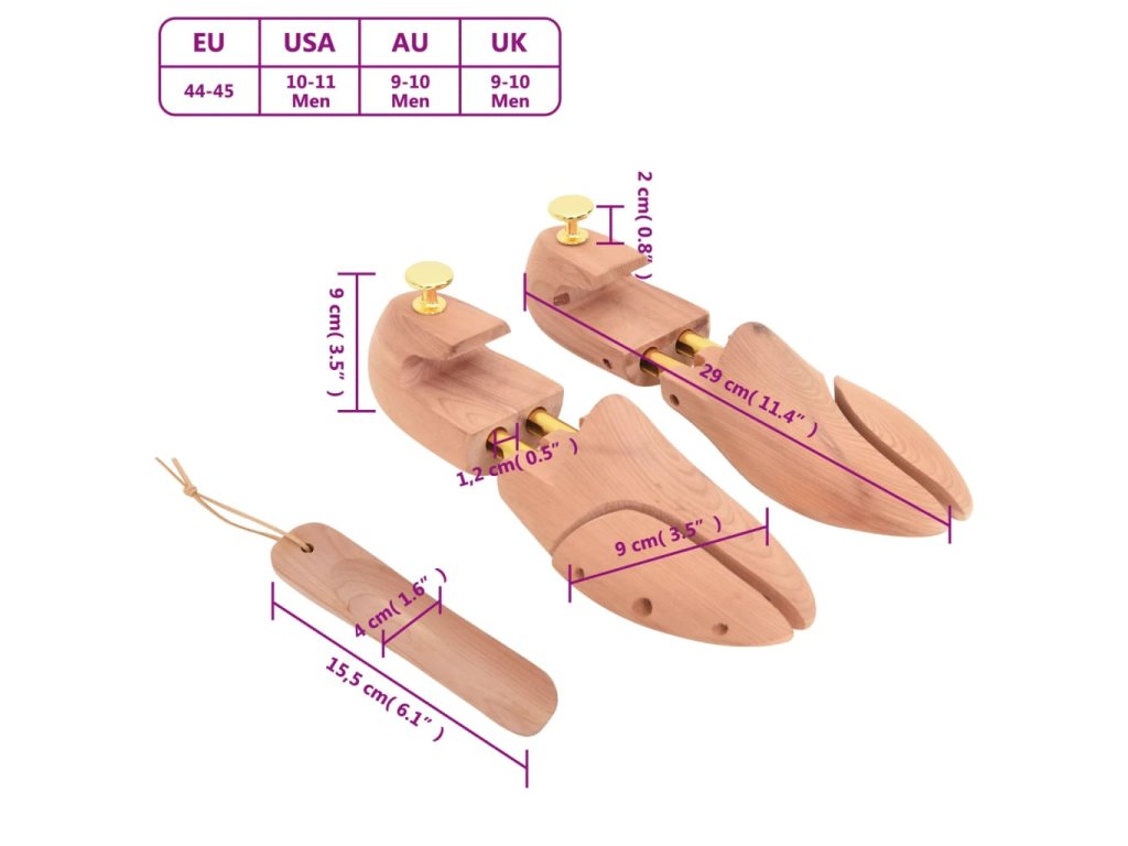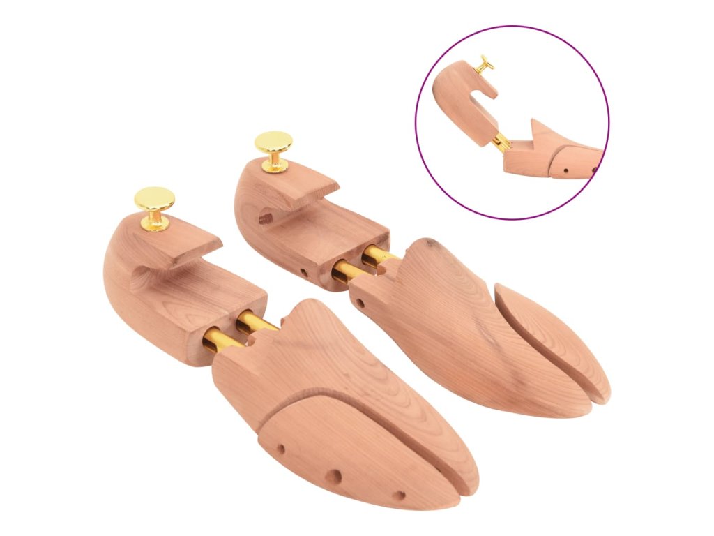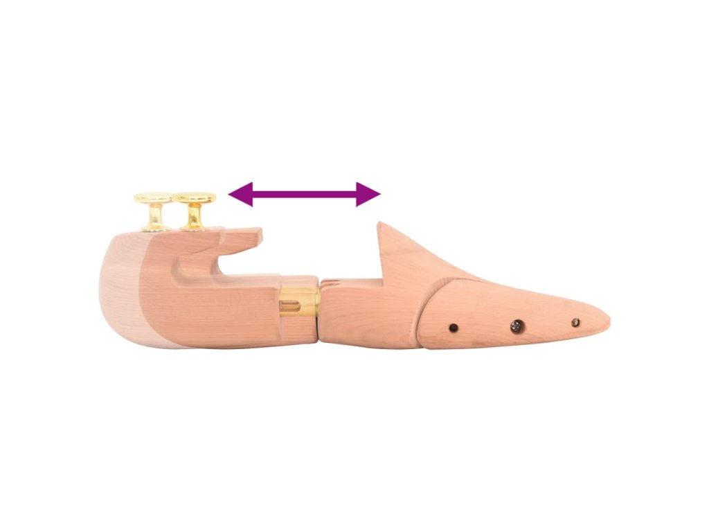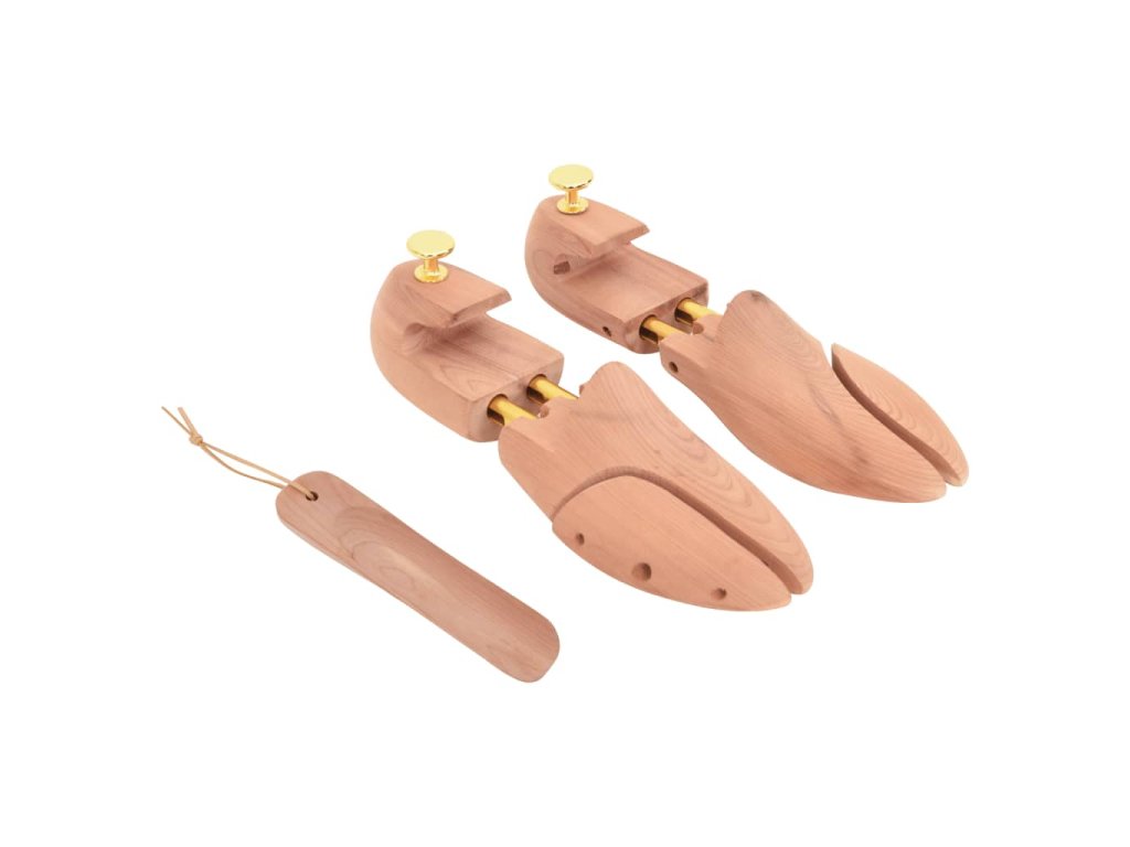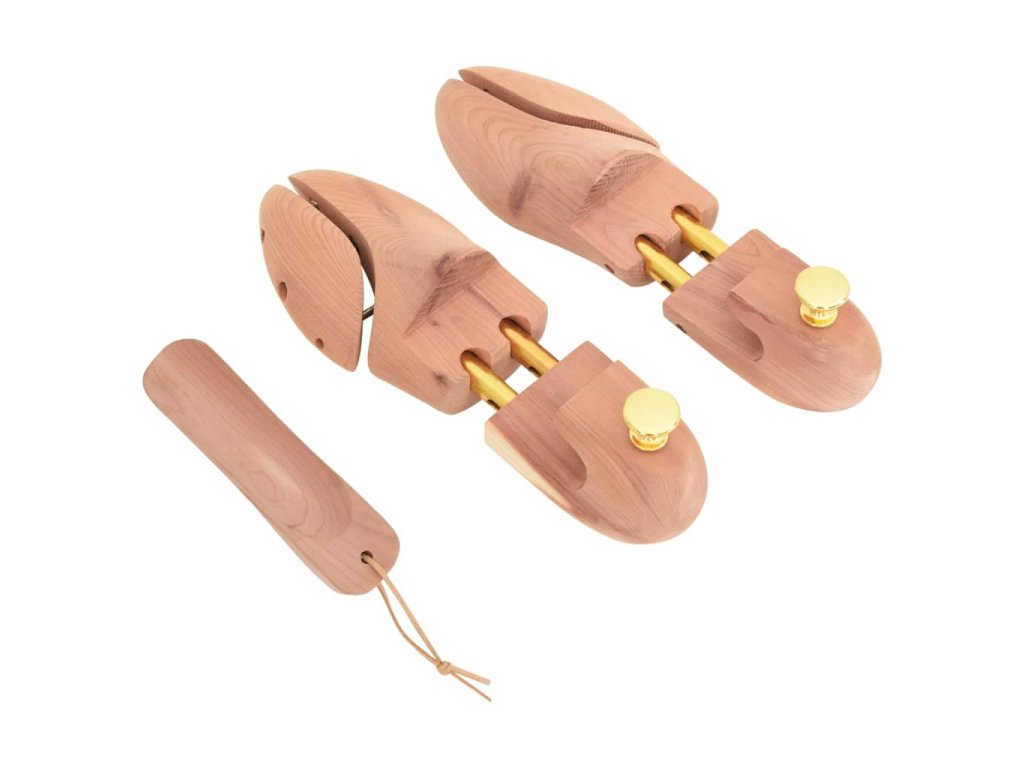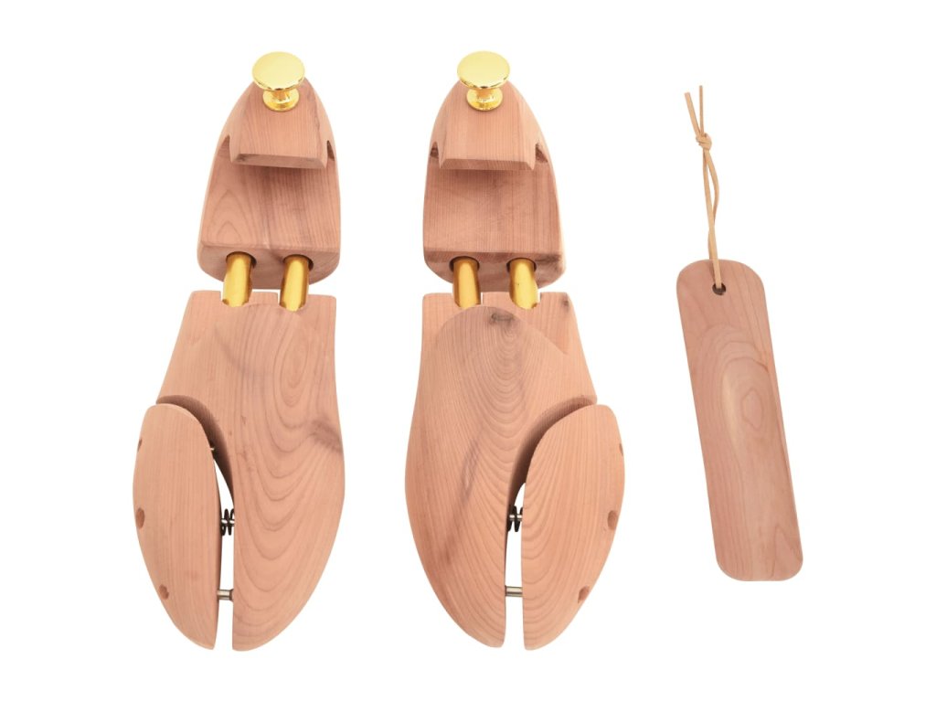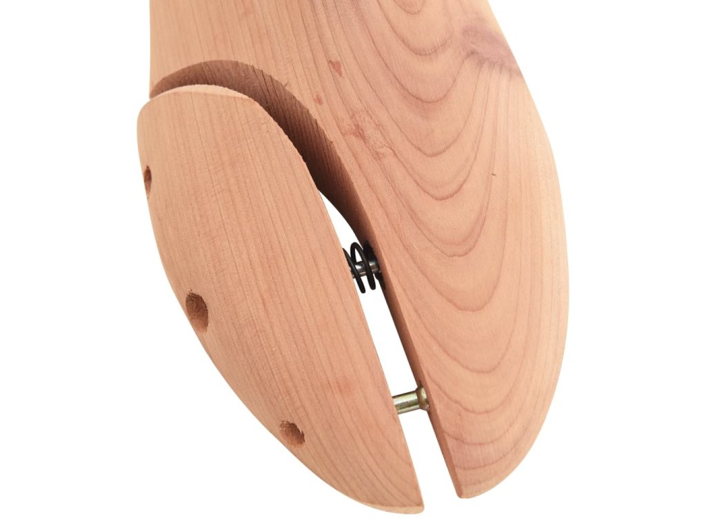 - Masivní cedrové dřevo: Tento napínák je vyroben z cedrového dřeva, které pohlcuje vlhkost, příjemně voní a pomáhá udržovat tvar obuvi, zejména kožené, a prodlužuje tak její životnost.