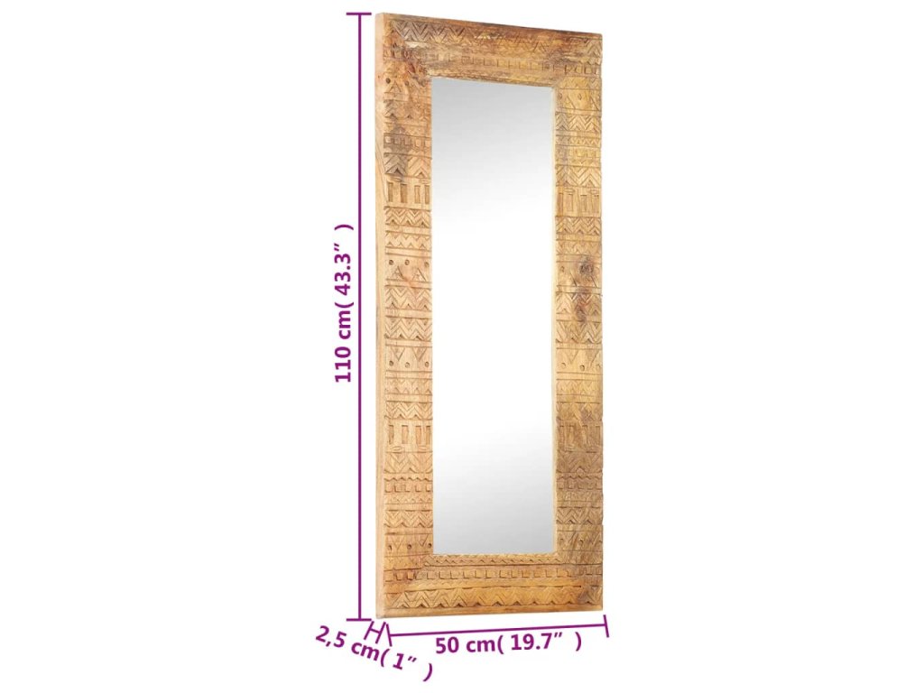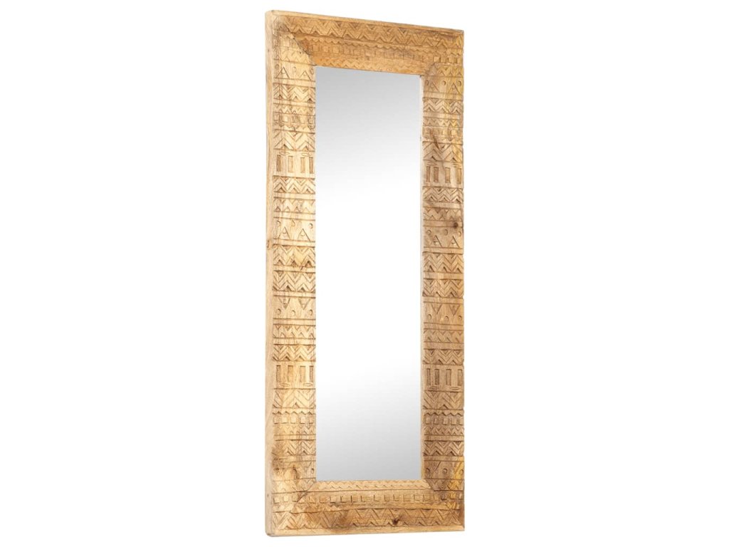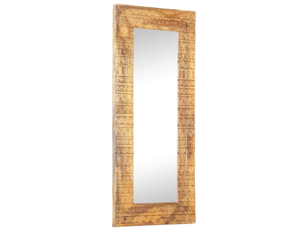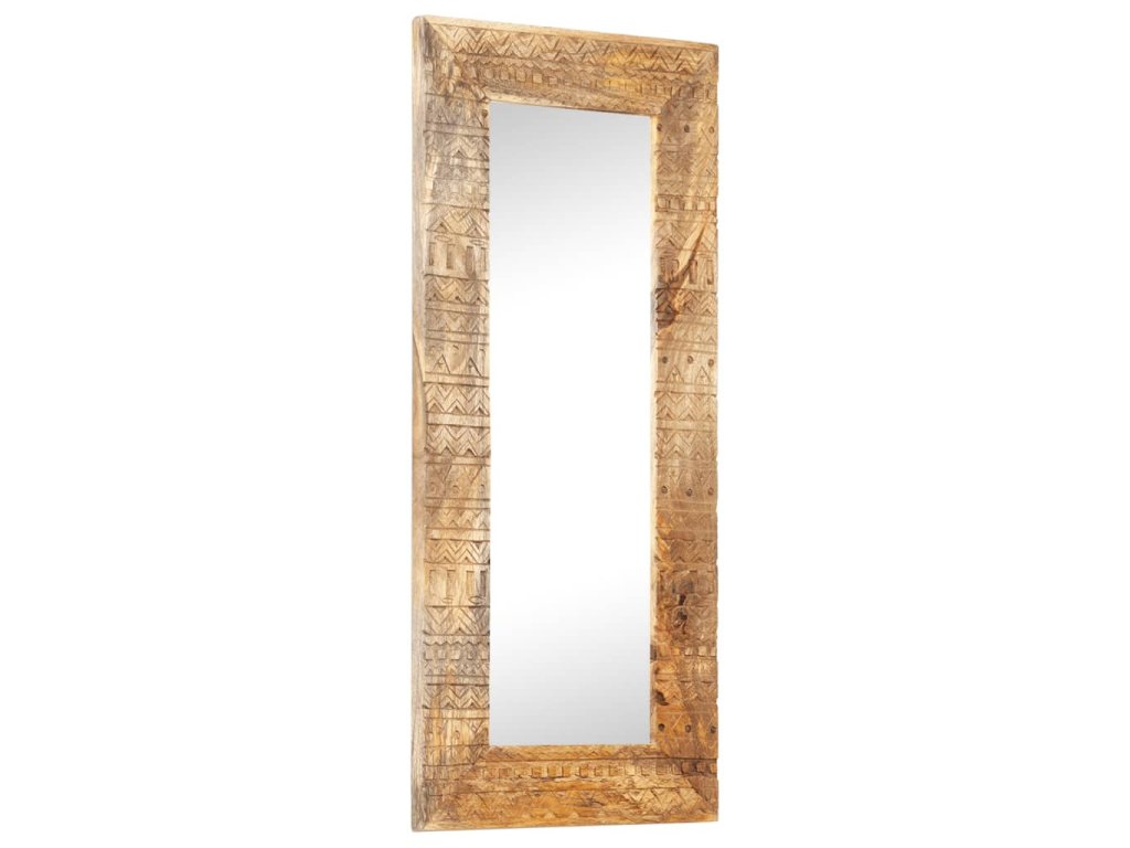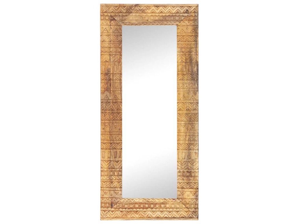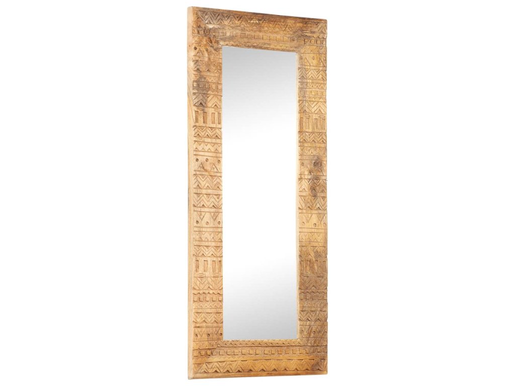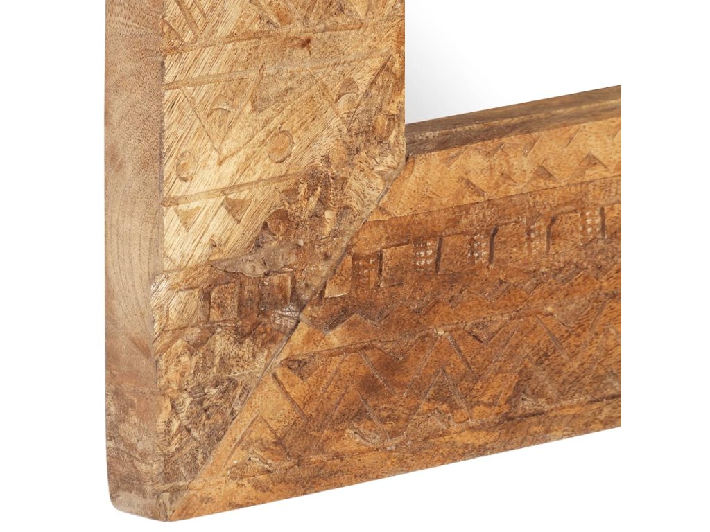Zrcadlo je vyrobené z masivního mangovníku, tropického tvrdého dřeva, které unese velkou váhu. Rovněž výborně vzdoruje opotřebení, a proto je stabilní a má dlouhou životnost. Řemeslné zpracování a krásná kresba dřeva dávají každému kusu nábytku jeho jedinečný a od všech ostatních mírně odlišný charakter. Atraktivní vzhled tohoto kusu je zdůrazněný ručně vyřezávaným vzorem.