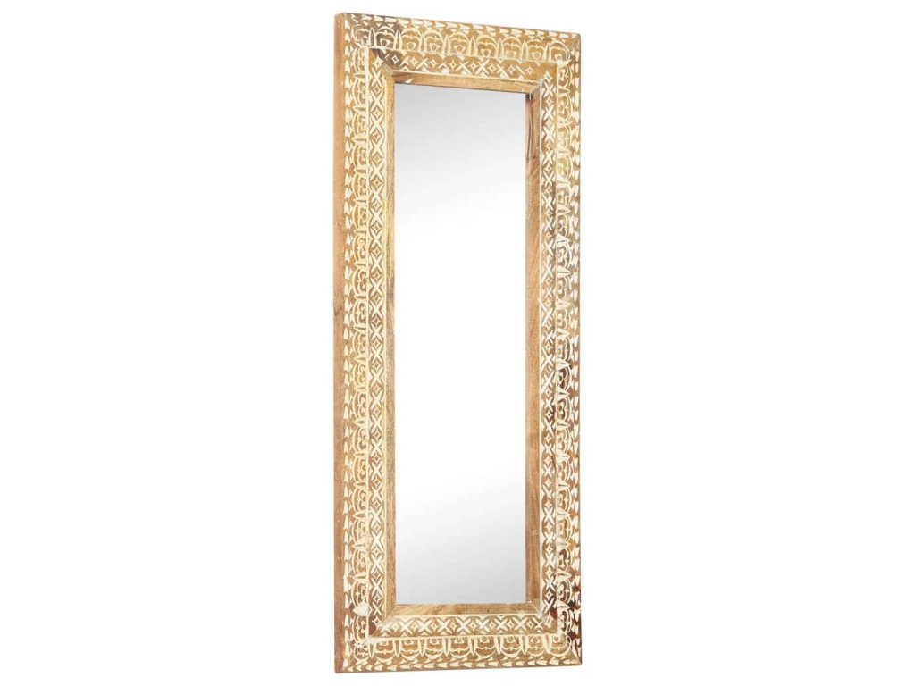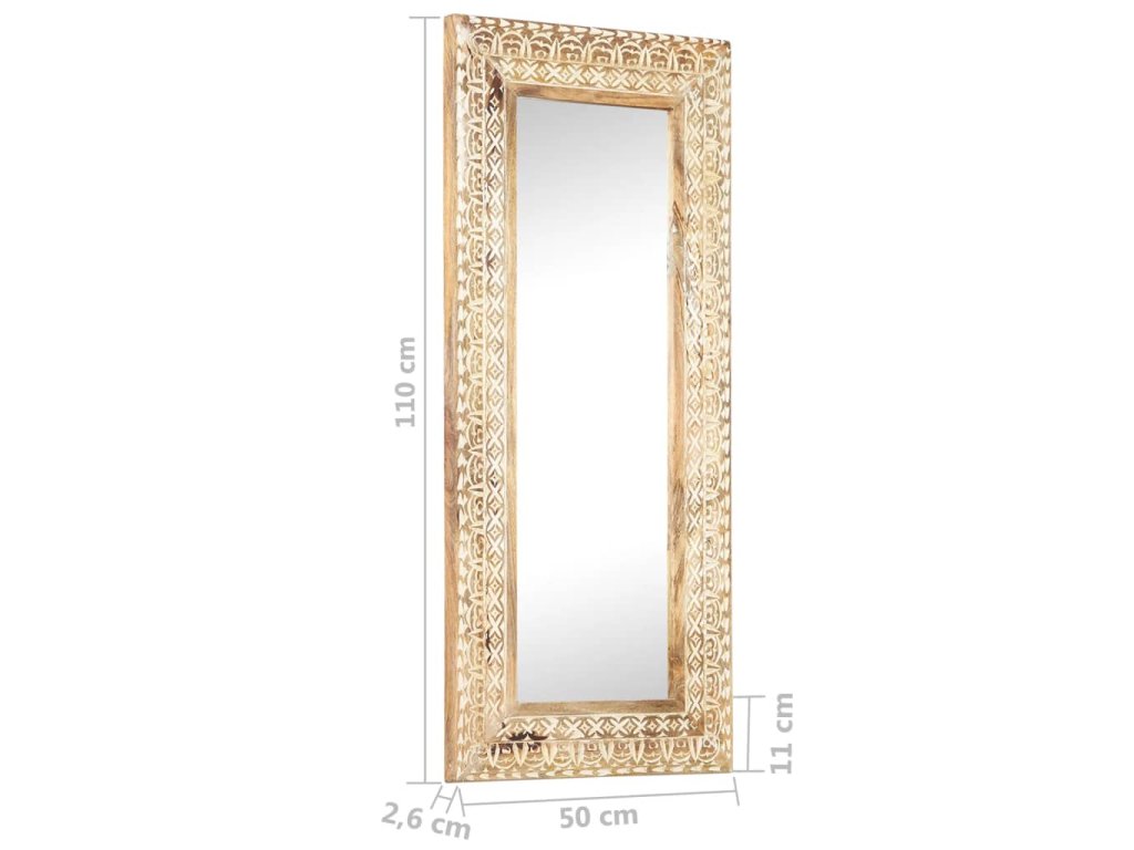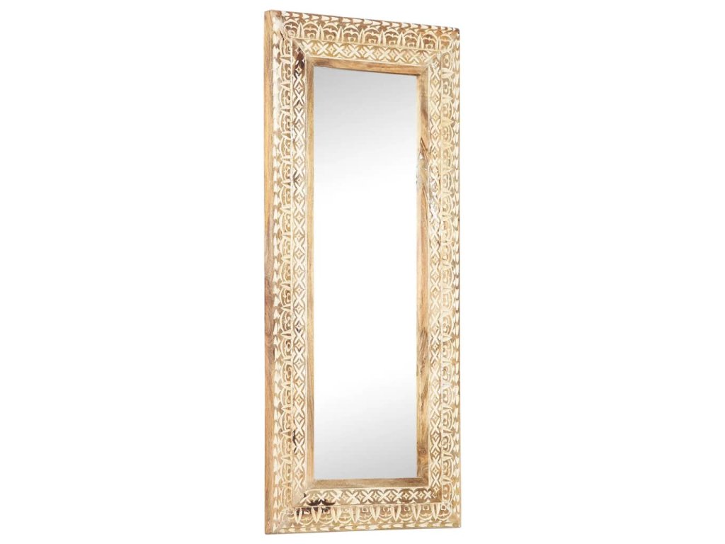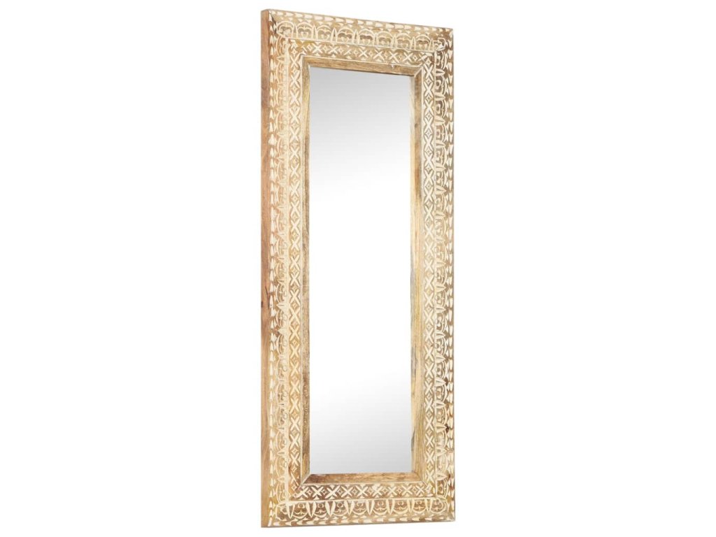 Zrcadlo je vyrobené z masivního mangovníku, tropického tvrdého dřeva, které unese velkou váhu. Rovněž výborně vzdoruje opotřebení, a proto je stabilní a má dlouhou životnost. Řemeslné zpracování a krásná kresba dřeva dávají každému kusu nábytku jeho jedinečný a od všech ostatních mírně odlišný charakter. Atraktivní vzhled tohoto kusu je zdůrazněný ručně vyřezávaným vzorem.