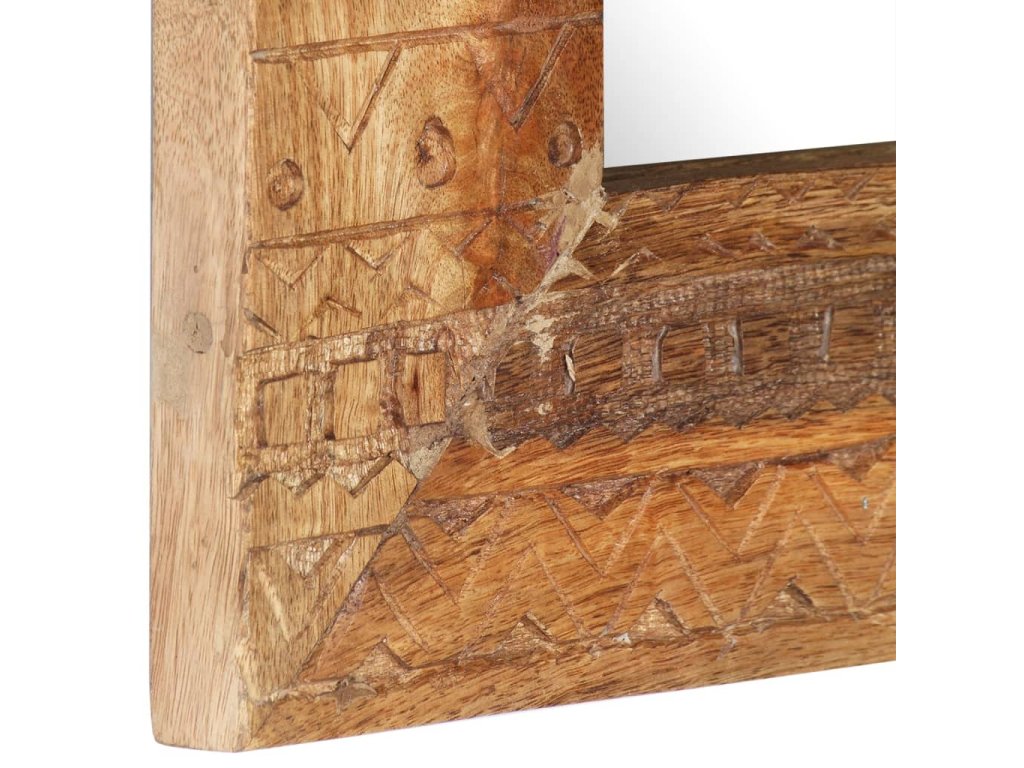 Zrcadlo je vyrobené z masivního mangovníku, tropického tvrdého dřeva, které unese velkou váhu. Rovněž výborně vzdoruje opotřebení, a proto je stabilní a má dlouhou životnost. Řemeslné zpracování a krásná kresba dřeva dávají každému kusu nábytku jeho jedinečný a od všech ostatních mírně odlišný charakter. Atraktivní vzhled tohoto kusu je zdůrazněný ručně vyřezávaným vzorem.