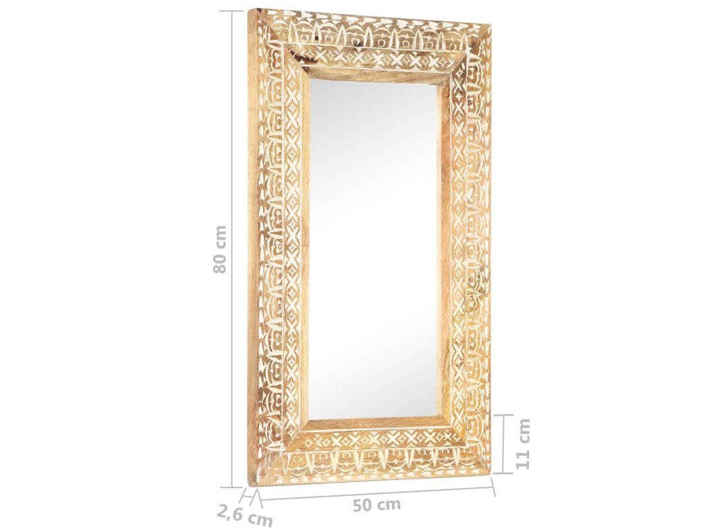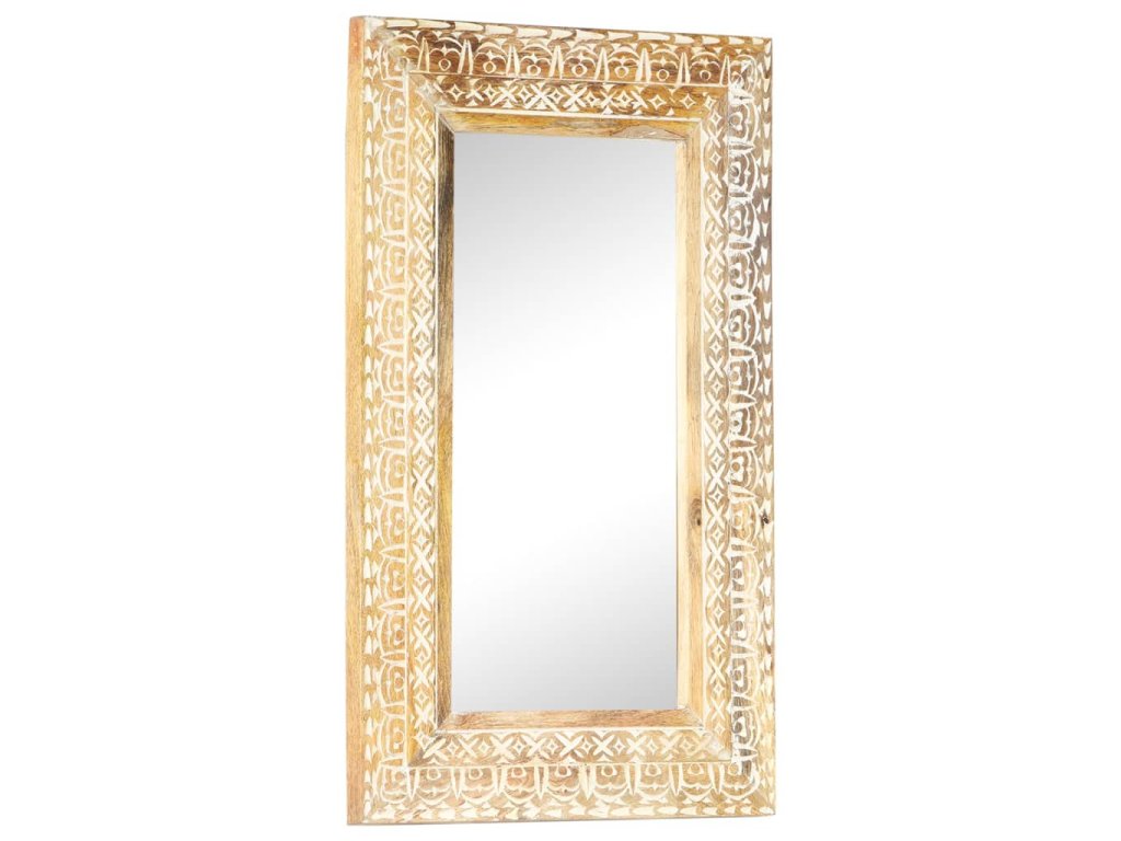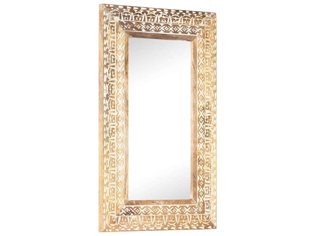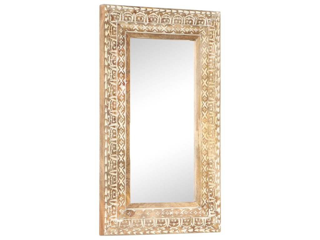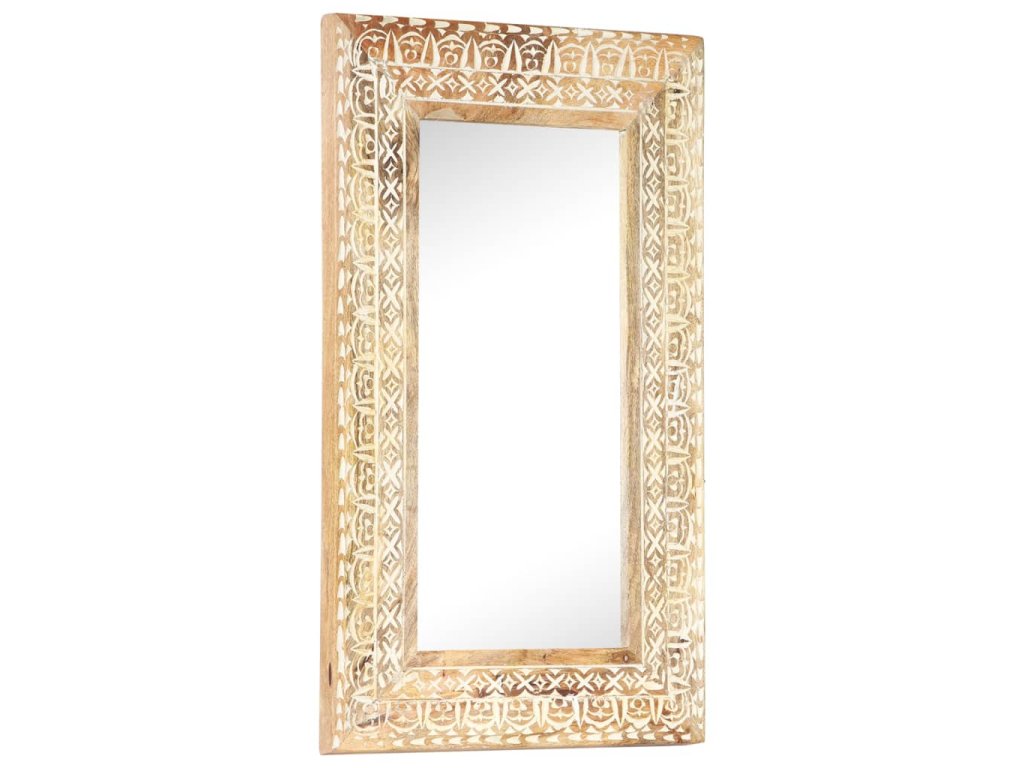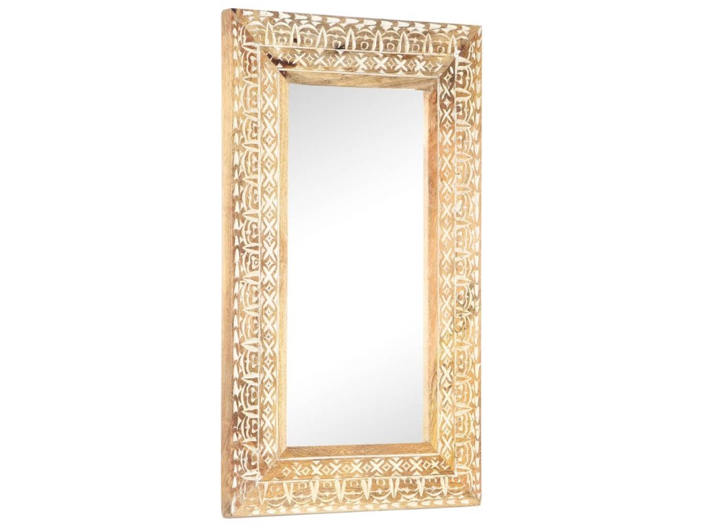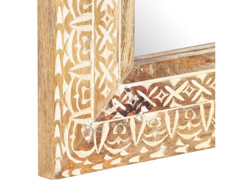 Zrcadlo je vyrobené z masivního mangovníku, tropického tvrdého dřeva, které unese velkou váhu. Rovněž výborně vzdoruje opotřebení, a proto je stabilní a má dlouhou životnost. Řemeslné zpracování a krásná kresba dřeva dávají každému kusu nábytku jeho jedinečný a od všech ostatních mírně odlišný charakter. Atraktivní vzhled tohoto kusu je zdůrazněný ručně vyřezávaným vzorem.