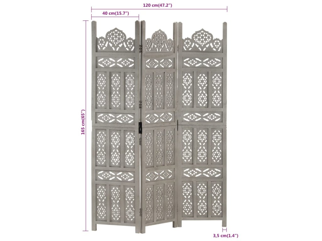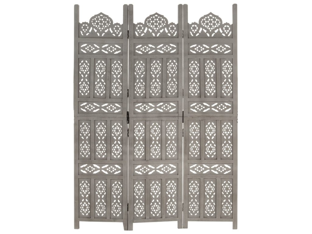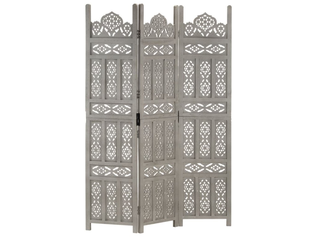 Ručně vyřezávaný 3dílný paraván šedý 120x165 masivní mangovník 285321