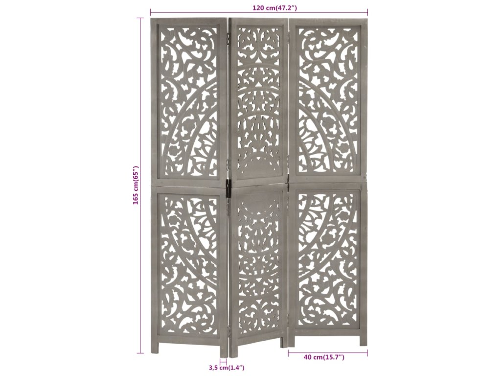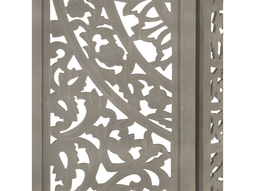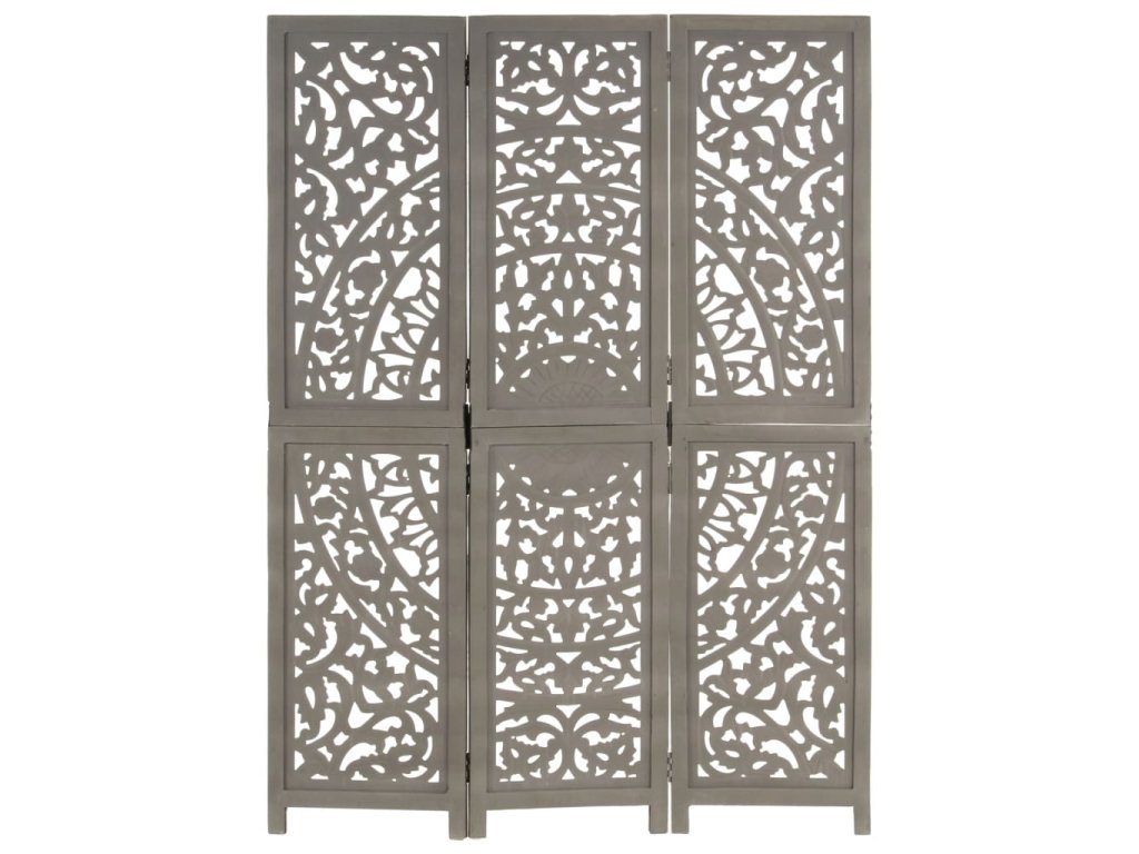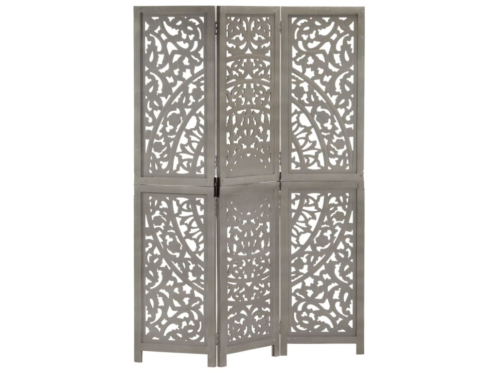 Ručně vyřezávaný 3dílný paraván šedý 120x165 masivní mangovník 285337