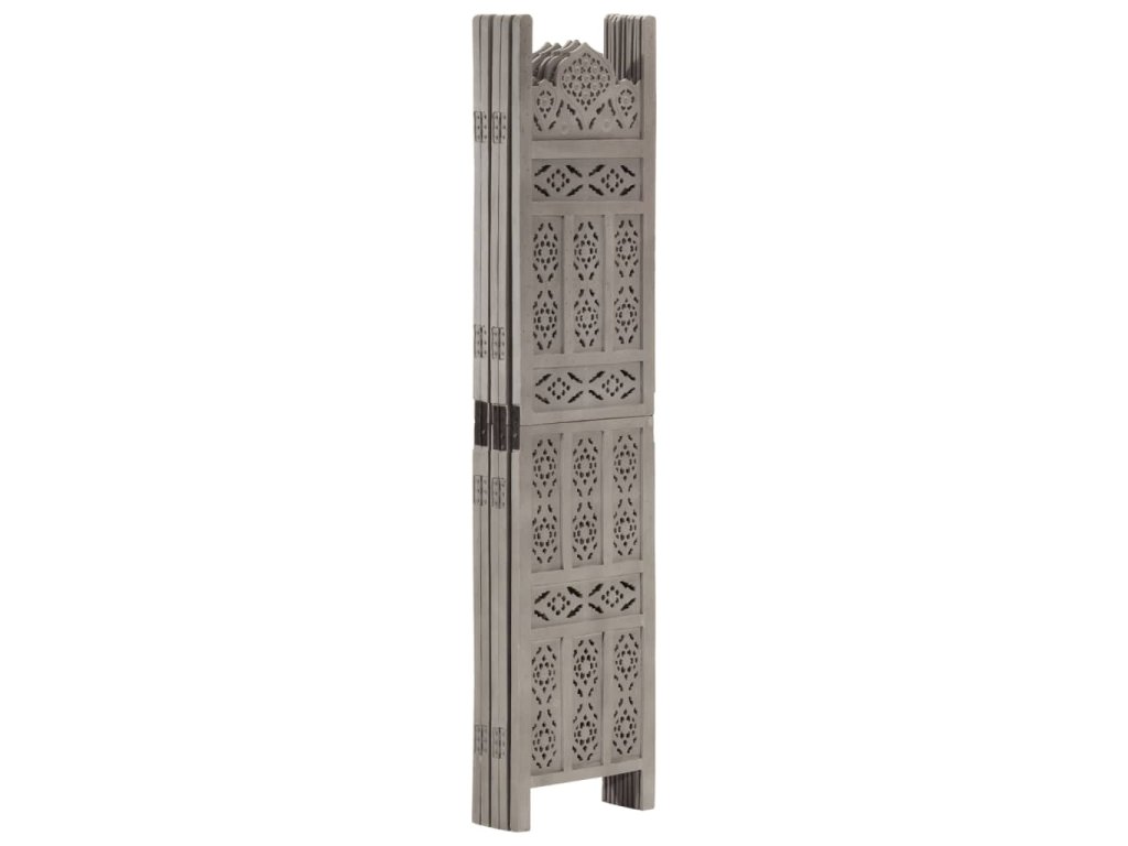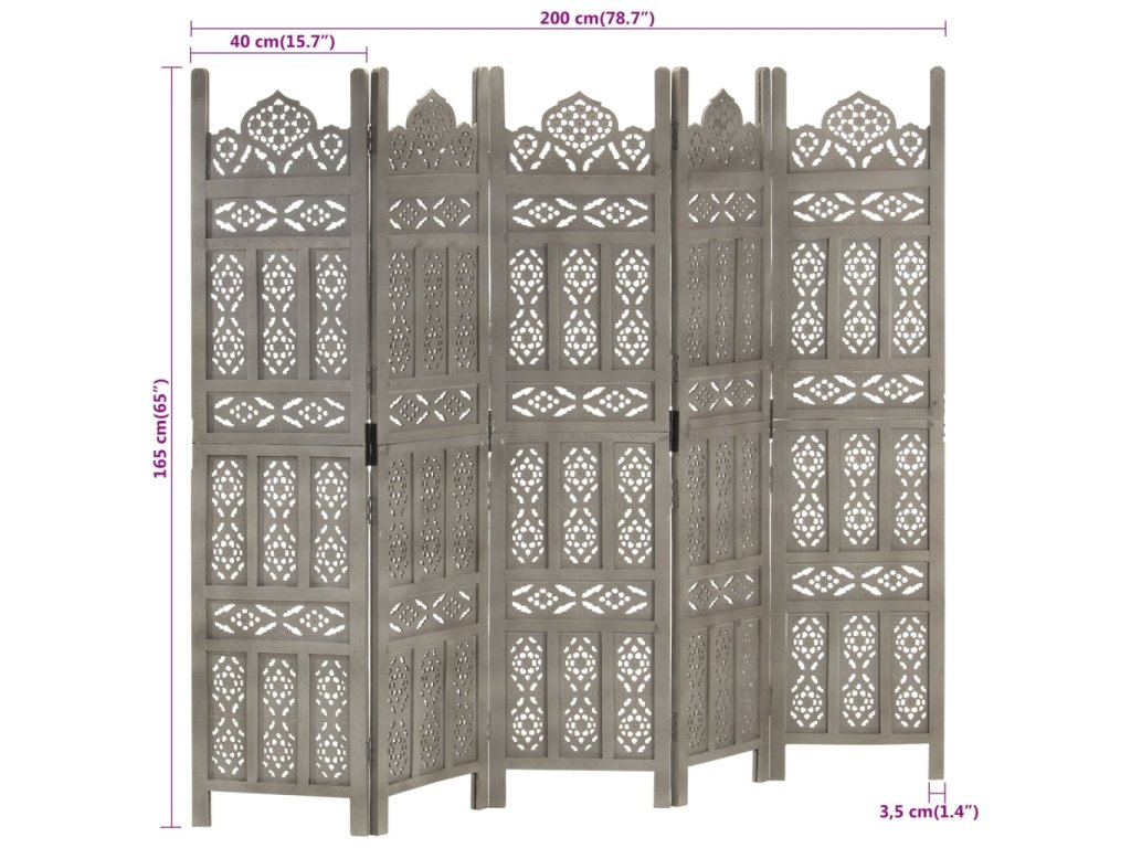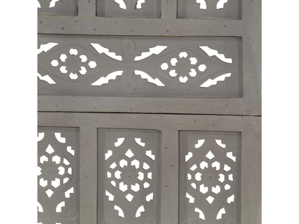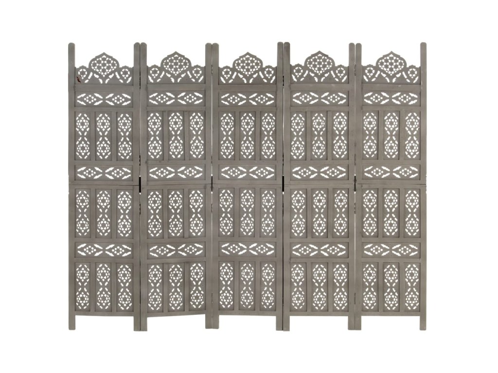 Ručně vyřezávaný 5dílný paraván šedý 200x165 masivní mangovník 285323