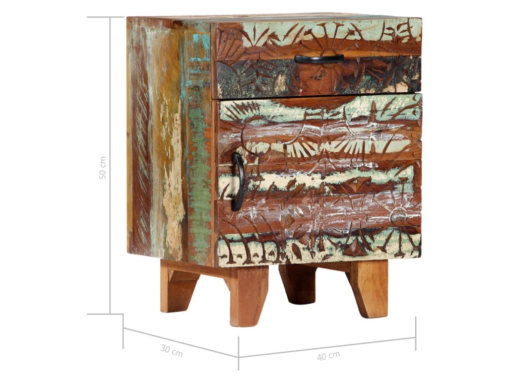 Ručně vyřezávaný noční stolek 40 x 30 x 50 cm recyklované dřevo 247911