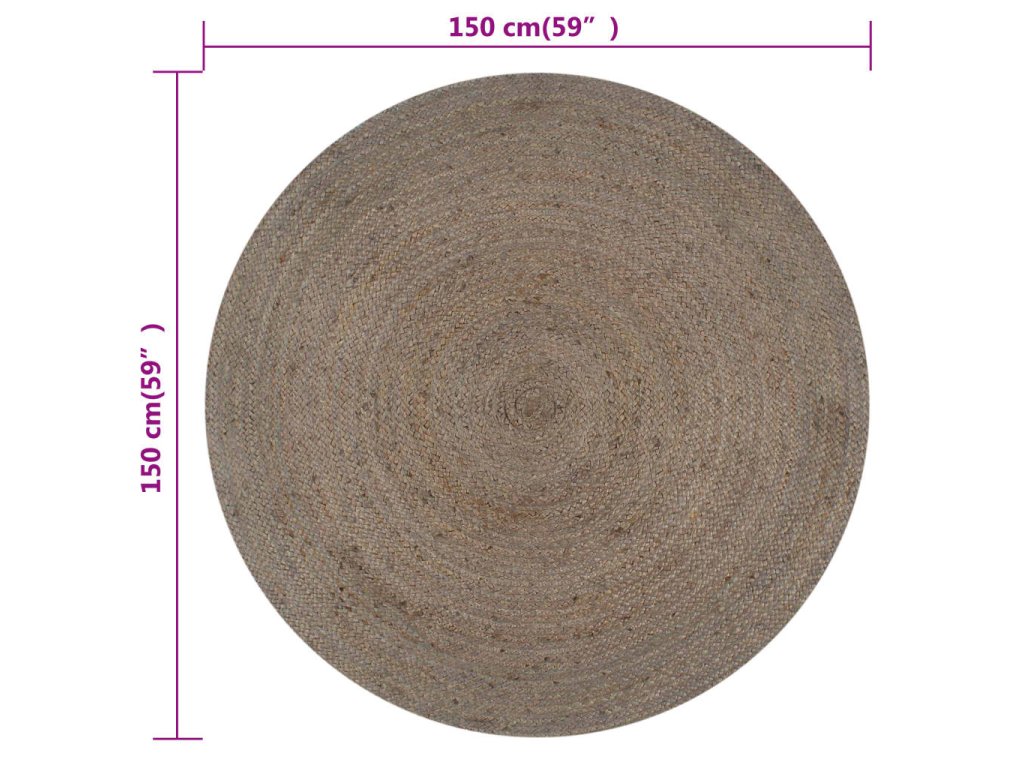 Ručně vyrobený koberec z juty kulatý 150 cm šedý 133664