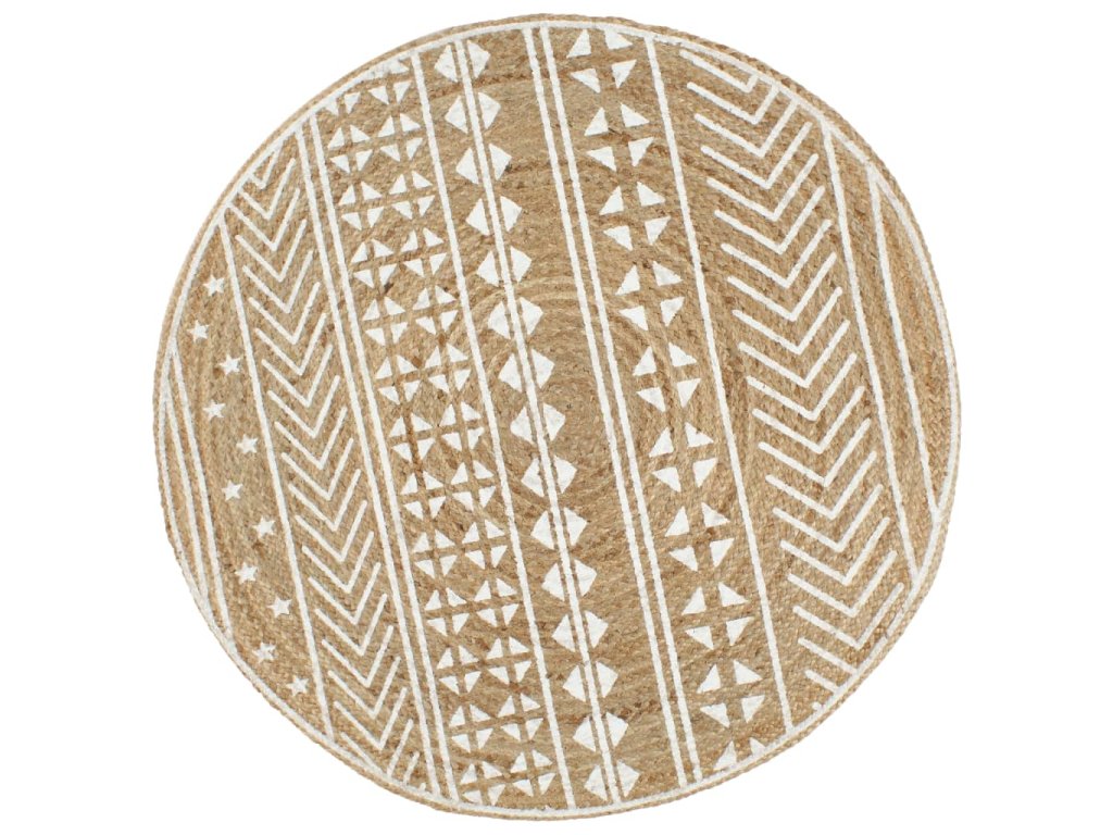 Ručně vyrobený koberec z juty s bílým potiskem 120 cm 133693