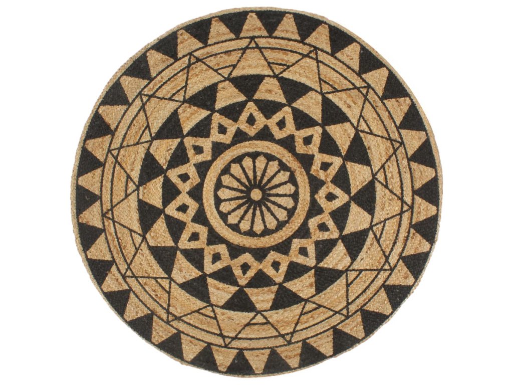 Ručně vyrobený koberec z juty s černým potiskem 120 cm 133699
