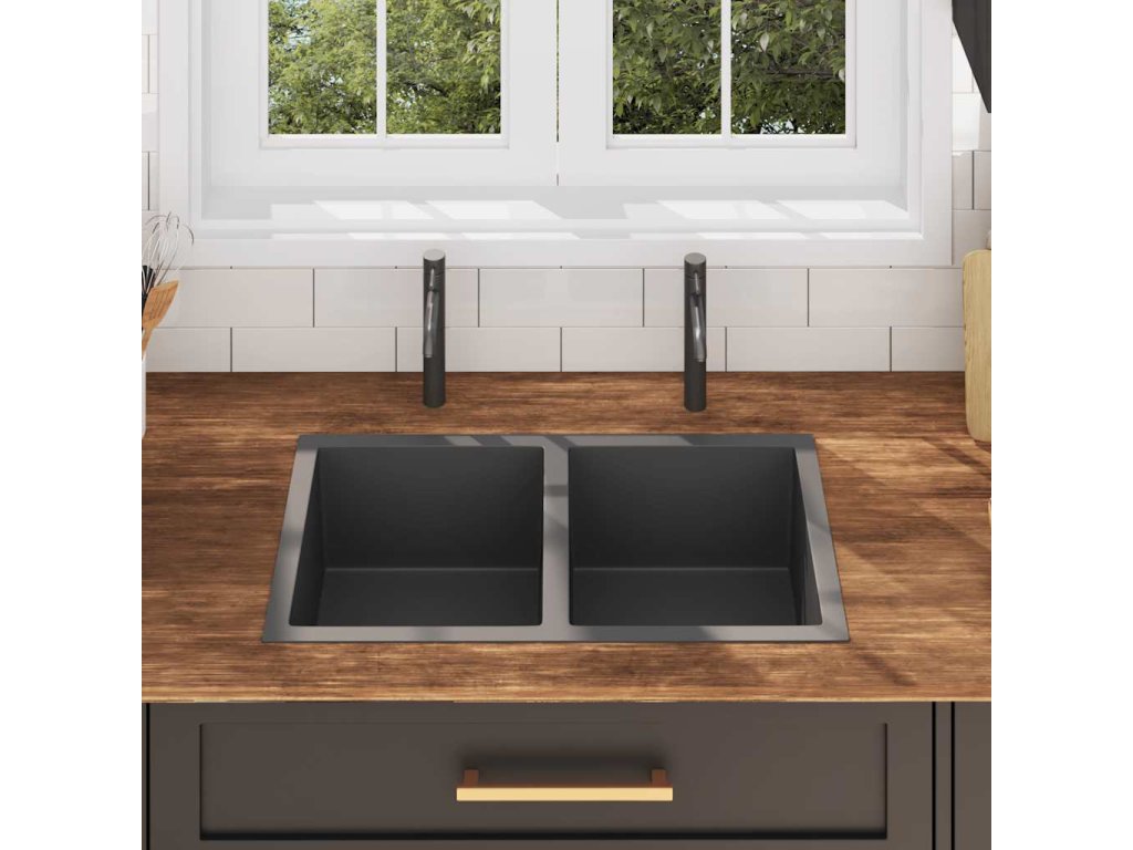 Ručně vyrobený kuchyňský dřez černý nerezová ocel 145085