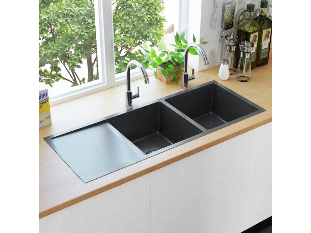 Ručně vyrobený kuchyňský dřez černý nerezová ocel 145087