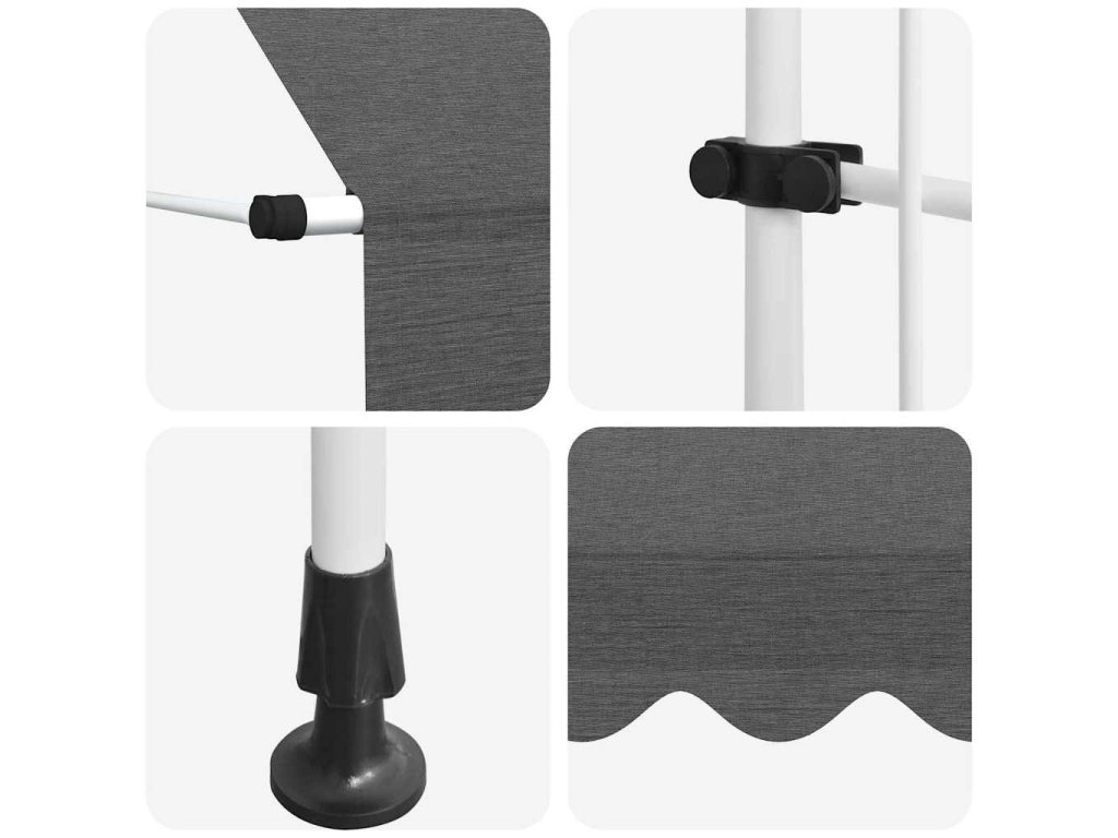 Tato markýza je vyrobena z vysoce kvalitního polyesteru s PU povlakem, odpuzuje špínu a vodu a je odolná proti UV záření a nepříznivému počasí. Díky silnému ocelovému rámu je tato markýza bytelná a odolná. Polyesterová střecha se dá sejmout a snadno očistit.