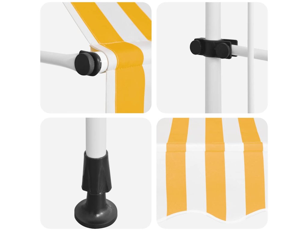 Naše markýza je vyrobená z polyesteru s vrstvou z PU, který odpuzuje vodu i špínu a je odolný vůči klimatickým podmínkám. Má pevný rám z oceli, který je zárukou stability a dlouhé životnosti markýzy. Polyesterovou stínící plachtu lze snadno sejmout a vyprat. Markýza je vybavená ruční klikou, takže je možné ji zatáhnout. Výšku a sklon markýzy lze taktéž upravit. Její montáž je velmi snadná.