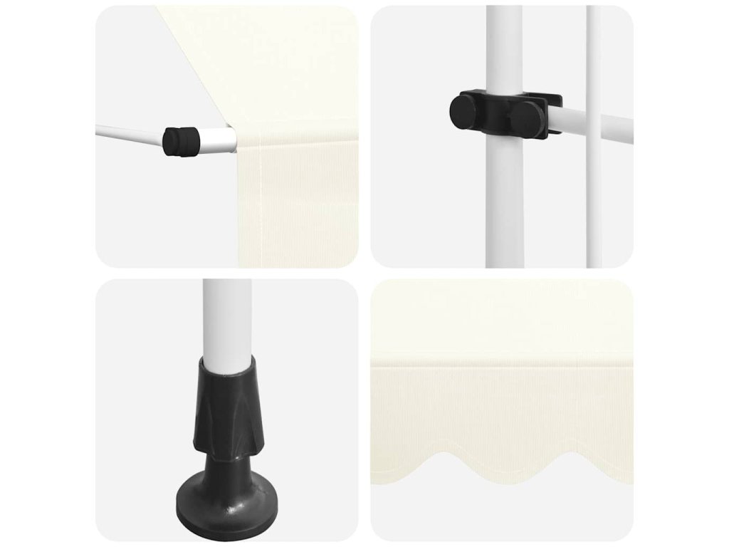 Tato markýza je vyrobena z vysoce kvalitního polyesteru s PU povlakem, odpuzuje špínu a vodu a je odolná proti UV záření a nepříznivému počasí. Díky silnému ocelovému rámu je tato markýza bytelná a odolná. Polyesterová střecha se dá sejmout a snadno očistit.