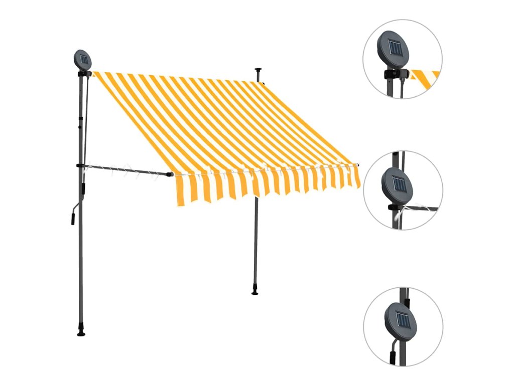 Markýza je vyrobená z kvalitního polyesteru potaženého vrstvou PU, a proto odpuzuje vodu i špínu a výborně vzdoruje klimatickým vlivům a UV záření. Silný ocelový rám jí dodává na pevnosti a prodlužuje její životnost. Polyesterová stříška se snadno čistí, lze ji totiž sejmout a oprat. Markýzu je možné zatahovat a roztahovat pomocí ruční kliky. Nastavit můžete i její výšku a sklon. Solárně napájená LED světla vám navíc v noci poskytnou osvětlení. Sestavení markýzy je jednoduché.