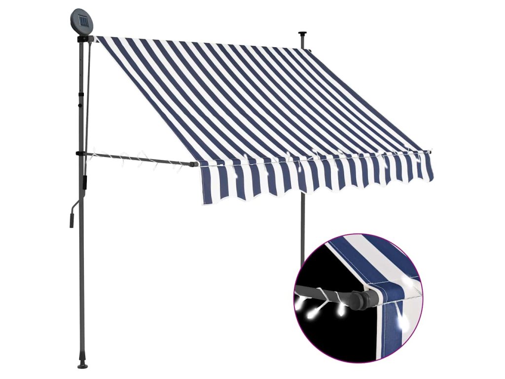 Ručně zatahovací markýza s LED světlem 100 cm modrobílá 145841