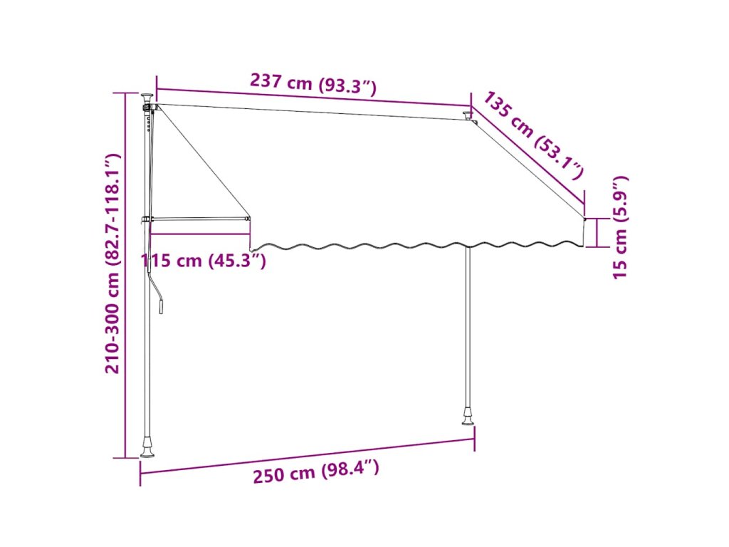 Markýza je vyrobená z kvalitního polyesteru potaženého vrstvou PU, a proto odpuzuje vodu i špínu a výborně vzdoruje klimatickým vlivům a UV záření. Silný ocelový rám jí dodává na pevnosti a prodlužuje její životnost. Polyesterová stříška se snadno čistí, lze ji totiž sejmout a oprat. Markýzu je možné zatahovat a roztahovat pomocí ruční kliky. Nastavit můžete i její výšku a sklon. Solárně napájená LED světla vám navíc v noci poskytnou osvětlení. Sestavení markýzy je jednoduché.