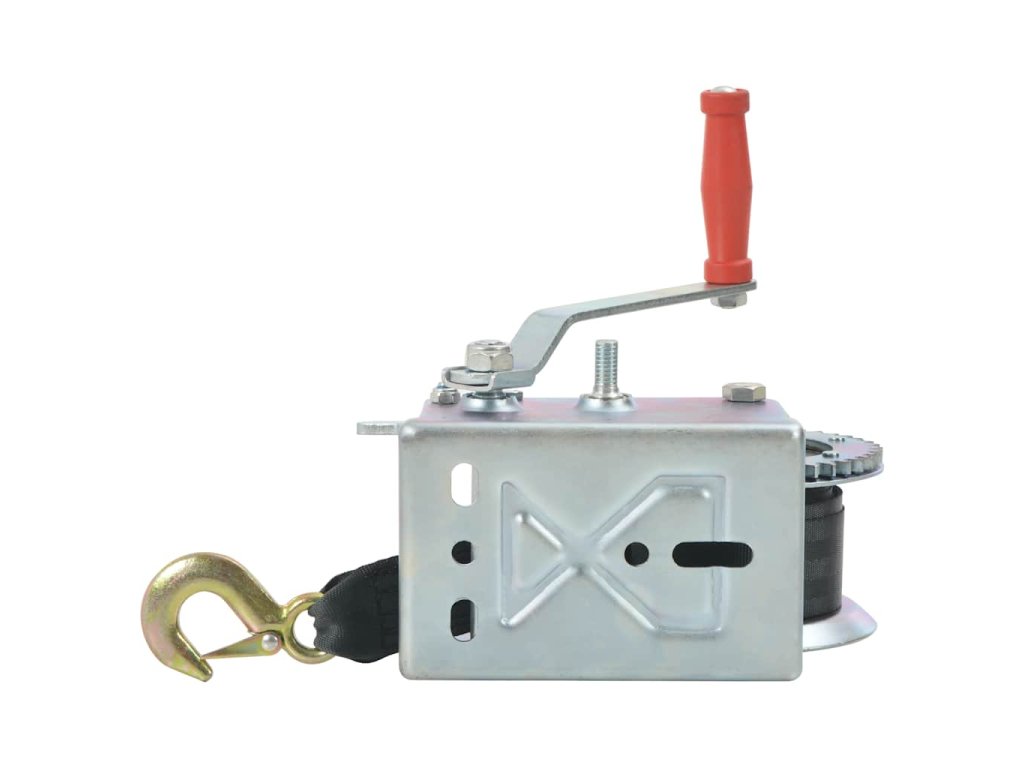 Ruční naviják s tkaným popruhem je ideální pro zdvihání nákladních aut a přívěsů, ale i pro jiné tažné úkony. V našem obchodě naleznete také kompatibilní stojan na naviják přívěsu pro lodě (SKU 90634), jehož zakoupením získáte kompletní set.