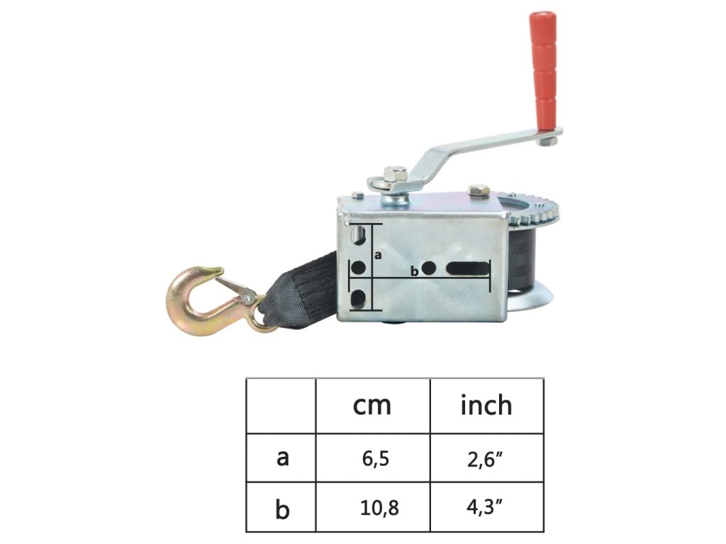 Ruční naviják s tkaným popruhem je ideální pro zdvihání nákladních aut a přívěsů, ale i pro jiné tažné úkony. V našem obchodě naleznete také kompatibilní stojan na naviják přívěsu pro lodě (SKU 90634), jehož zakoupením získáte kompletní set.