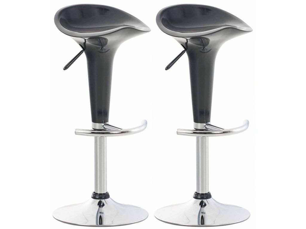 Sada 2 barových židlí SaddleBarová židle Saddle je vybavena plastovým sedákem. Tento model je díky plynovému zdvihu plynule výškově nastavitelný, a proto jej lze používat univerzálně a je vhodný pro všechny výšky baru. Sedák lze otáčet v rozsahu 360° a ergonomicky tvarovaný sedák se přizpůsobí vašemu tělu, což vám umožní pohodlné sezení po celé hodiny. Díky plastovému materiálu se tato pultová stolička snadno čistí. Kovová trubková podnož v chromovém vzhledu je vybavena opěrkou na nohy, která podporuje pohodlí při sezení. Pod podnožkou je gumový kroužek, který zabraňuje poškození podlahy