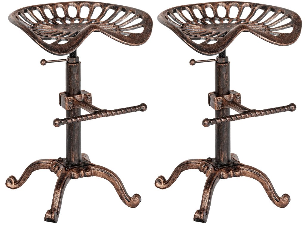 Sada 2 barových židlí ButchNeobvyklý vzhled s tradičními materiály dělá z této židle výjimečný doplněk. Litinový sedák obou barových stoliček nabízí nejlepší komfort sezení i bez jakéhokoli čalounění, protože sedák je tvarován tak, aby se mírným zakřivením přizpůsobil tělu. Výškově nastavitelný sedák, který lze nastavit pomocí aretační kličky pod sedákem a zabránit tak nepříjemnému viklání, nabízí příjemné posezení pro každou výšku. Pohodlná opěrka nohou, která je rovněž výškově nastavitelná, dále optimalizuje komfort sezení. Výšku nohou lze individuálně nastavit pomocí chráničů podlahy, díky čemuž se nepříjemné pohupování stane minulostí. Zdobený kovový rám s práškovou povrchovou úpravou dodává soupravě stoliček jedinečný design a zajišťuje její bezpečné postavení.