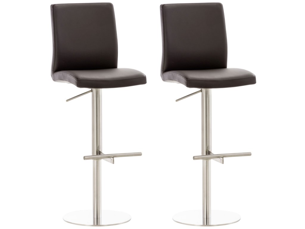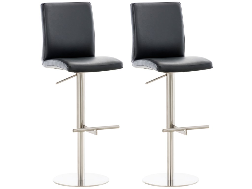Sada 2 koženkových barových židlí CadizTato sada dvou stylových barových židlí má velmi lákavý vzhled. Čalouněné sedáky jsou doplněny opěradlem a podnožkou, které zajišťují pohodlné sezení. Obě barové židle jsou výškově nastavitelné pomocí plynového zdvihu a lze je otáčet o 360°. Přiloženou opěrku nohou lze nastavit synchronizovaně s výškou sedáku. Design doplňuje matný černý nebo kartáčovaný kovový rám z nerezové oceli, který dodává pultové stoličce stabilitu. Rám je navíc opatřen chráničem podlahy, který zabraňuje jejímu poškrábání a poškození.