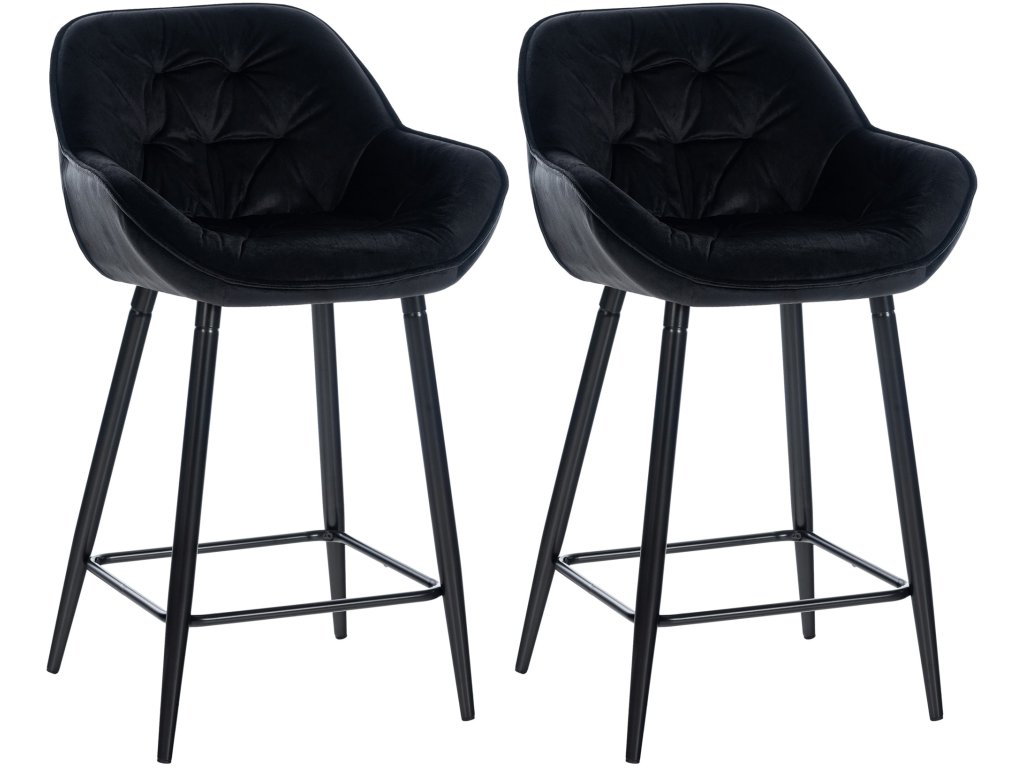 Sada 2 sametových barových židlí GibsonBarové židle Gibson v sobě spojují moderní design, prvotřídní pohodlí a praktickou funkčnost. Měkce čalouněné skořepiny sedáků a opěradel nabízejí výjimečný zážitek ze sezení a zároveň zmírňují tlak na spodní část zad. Zdařilá kombinace matného černého rámu a módního potahu z prošívaného sametu, který je k dispozici v různých barvách, dodává stoličkám přitažlivý vzhled a umožňuje jim dodat elegantní nádech každé místnosti.