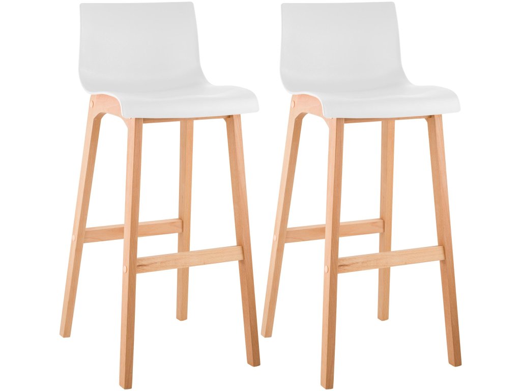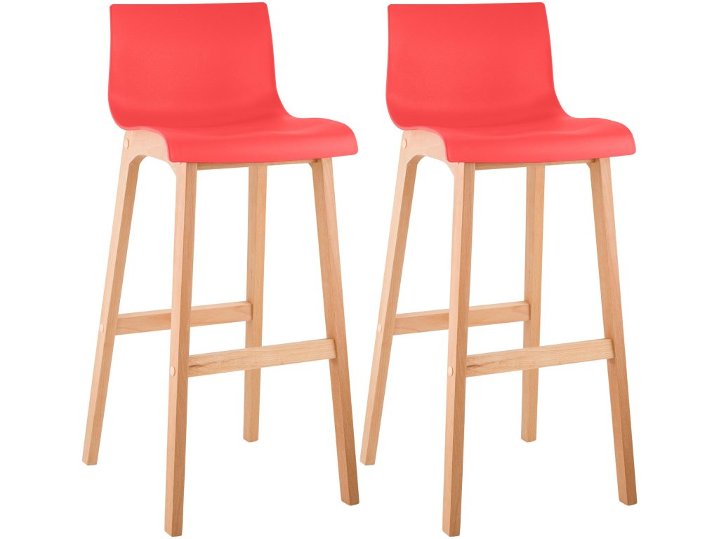 Sada 2 barových židlí Hover Natura s rámem na 4 noháchSada 2 barových židlí Hover zaujme svým moderním designem a zaručí jedinečnost svým vzhledem. Její vkusný design se hodí téměř ke každému stylu a dodá každému baru sofistikovaný vzhled. Sada barových židlí se vyznačuje zdařilou kombinací materiálů plastu a bukového dřeva a svými zářivými barvami vnese do každého baru závan čerstvého vzduchu. Skořepiny sedáků jsou vyrobeny z odolného plastu (polypropylenu) a velmi snadno se čistí. Díky příjemně vysokému opěradlu a ergonomicky tvarovanému sedáku se na něm pohodlně sedí i delší dobu. Pultová stolička stojí bezpečně na dřevěném rámu se čtyřmi nohami a uprostřed umístěné příčné vzpěry zajišťují dodatečnou stabilitu a slouží také jako praktická opěrka nohou. Všestranně stylová pultová stolička s mnoha výhodami a v mnoha barvách.
