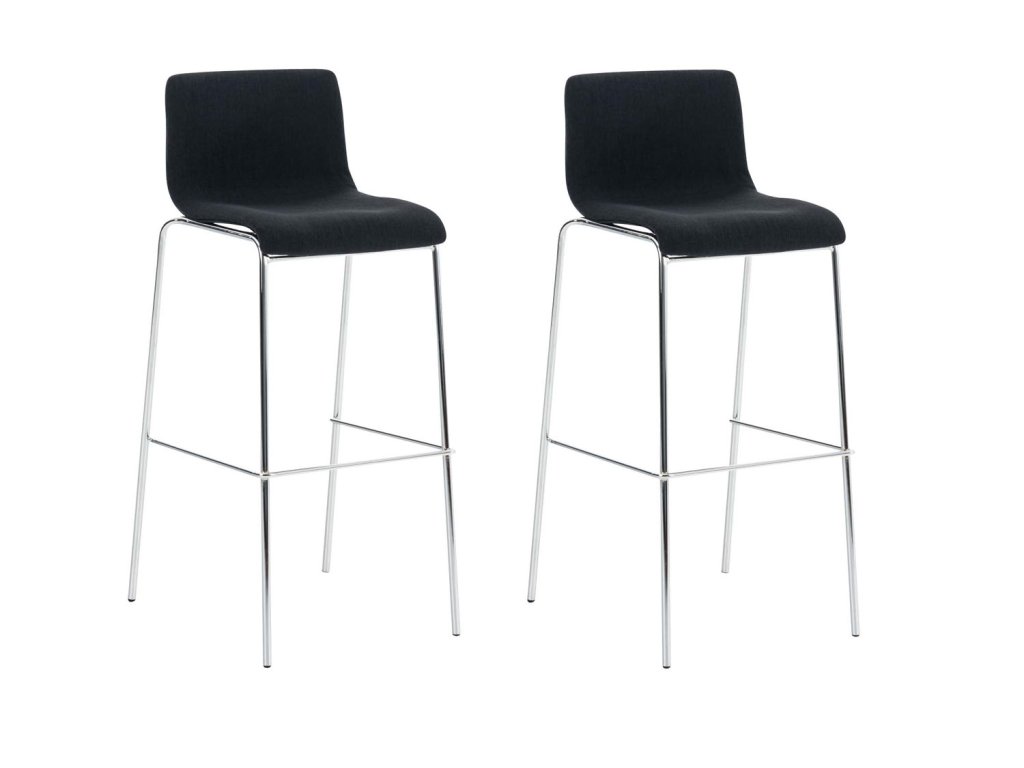 Sada 2 barových židlí Hover fabricTato sada barových židlí zaujme svým moderním designem a vysokým komfortem sezení. Robustní kovové rámy se 4 nohami zajišťují bezpečné a pevné postavení. Rámy jsou k dispozici v černé nebo chromové barvě. Pultové stoličky jsou stohovatelné a lze je skladovat, aby se ušetřilo místo. Ergonomicky tvarované sedáky se přizpůsobí tělu. Opěradlo, sedák a podnožka umožňují pohodlné sezení po dobu několika hodin. Sedáky jsou potaženy odolnou látkou (polyester) a velmi snadno se čistí.
