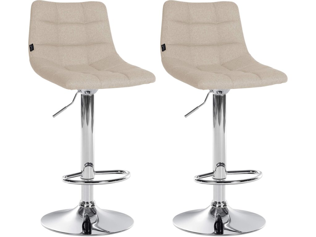 Sada 2 barových židlí Jerry látkaElegantní a stylová barová židle Jerry zaujme svou výškově nastavitelnou trubkovou základnou a přiloženou podnožkou, která zajišťuje pohodlné sezení. Výšku stoličky lze snadno a rychle nastavit podle vašich potřeb tak, aby se dokonale hodila k vašemu stolu nebo pultu. Barovou židli lze také otáčet o 360°, takže se můžete volně pohybovat.