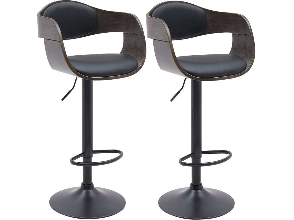 Barní stoličky stojí na robustních rámech z matného černého kovu. Barové stoličky jsou plynule výškově nastavitelné pomocí plynového zdvihu, a lze je proto individuálně přizpůsobit jakékoli tělesné velikosti a výšce barového pultu. Integrované opěrky nohou přispívají k rovnému a vzpřímenému sezení.