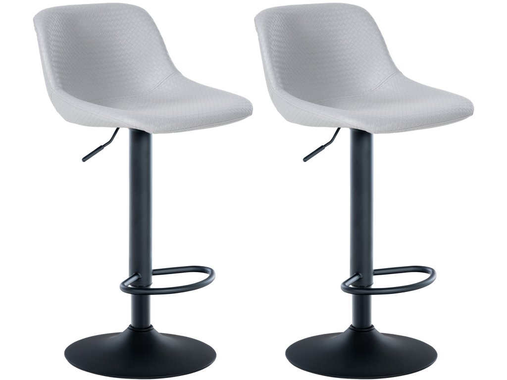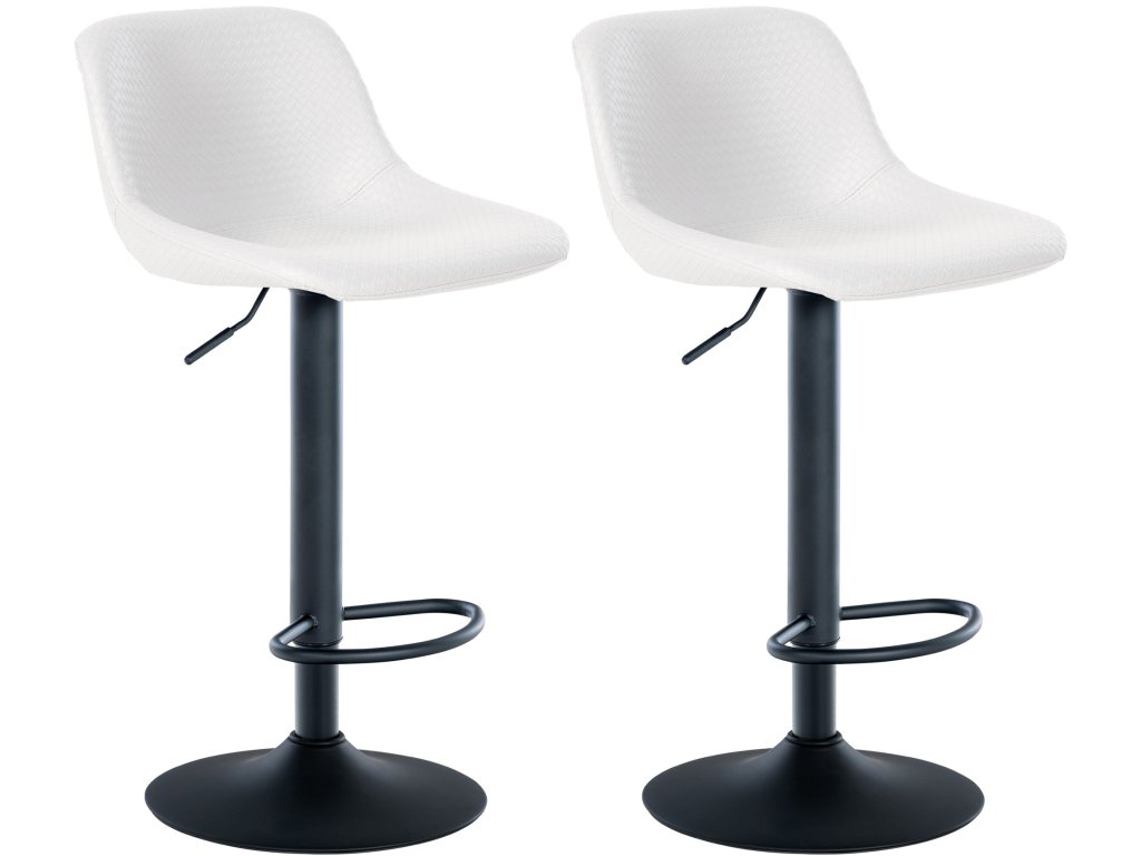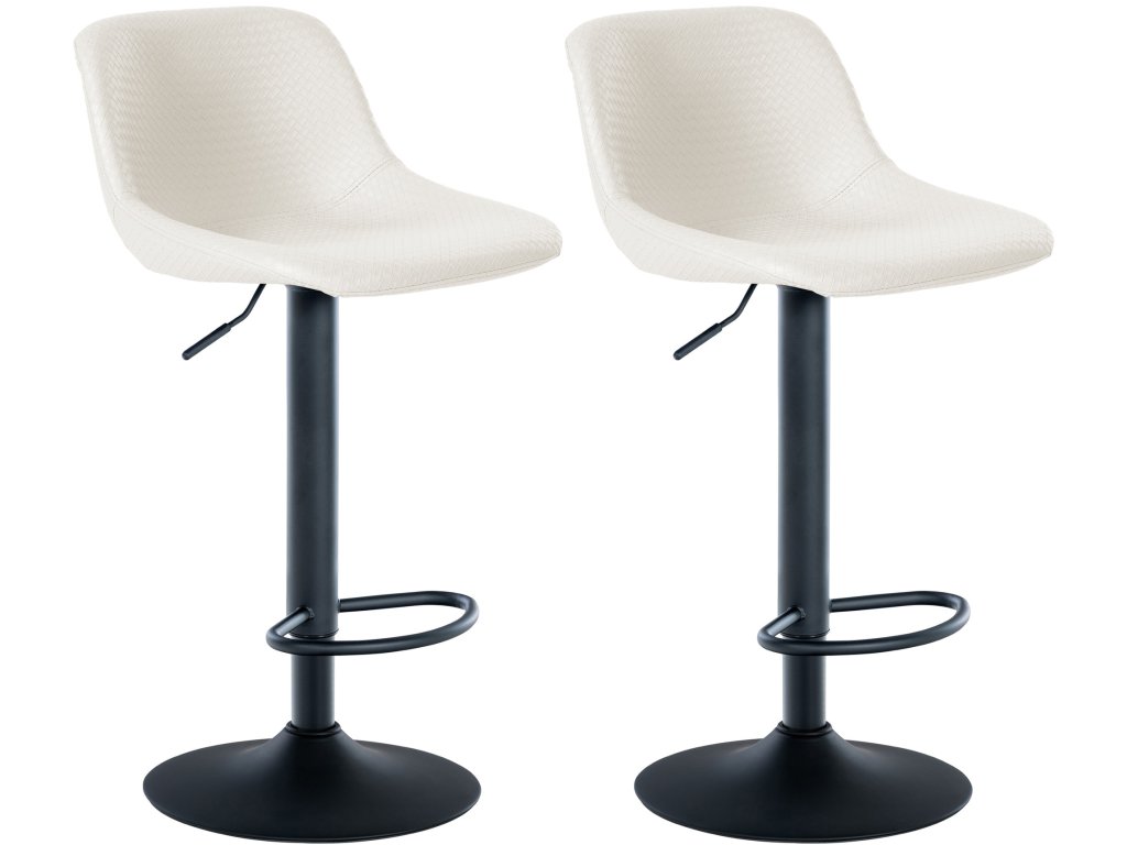 Trumpetové nožky umožňují otáčení barových stoliček o 360°. Každá z nich má také opěrku na nohy, která zajišťuje pohodlné sezení po dlouhou dobu. Černé kovové rámy jsou výškově nastavitelné a nabízejí bezpečný stojan. Rám je navíc vybaven chrániči podlahy, aby nedošlo k jejímu poškrábání.